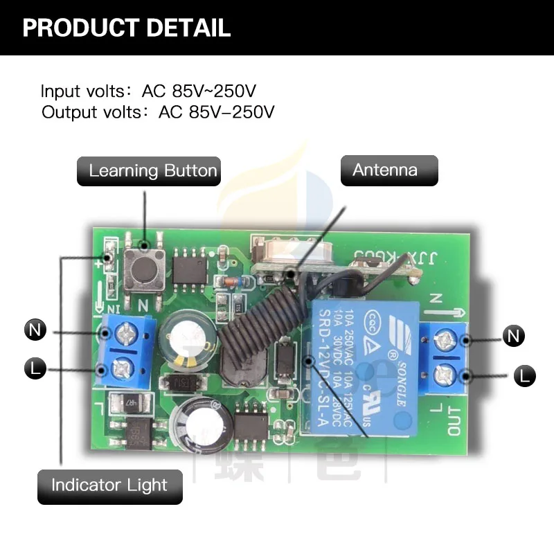 Номер модели1CH 433Mhz AC 85V ~ 250V Relay Receiver Module