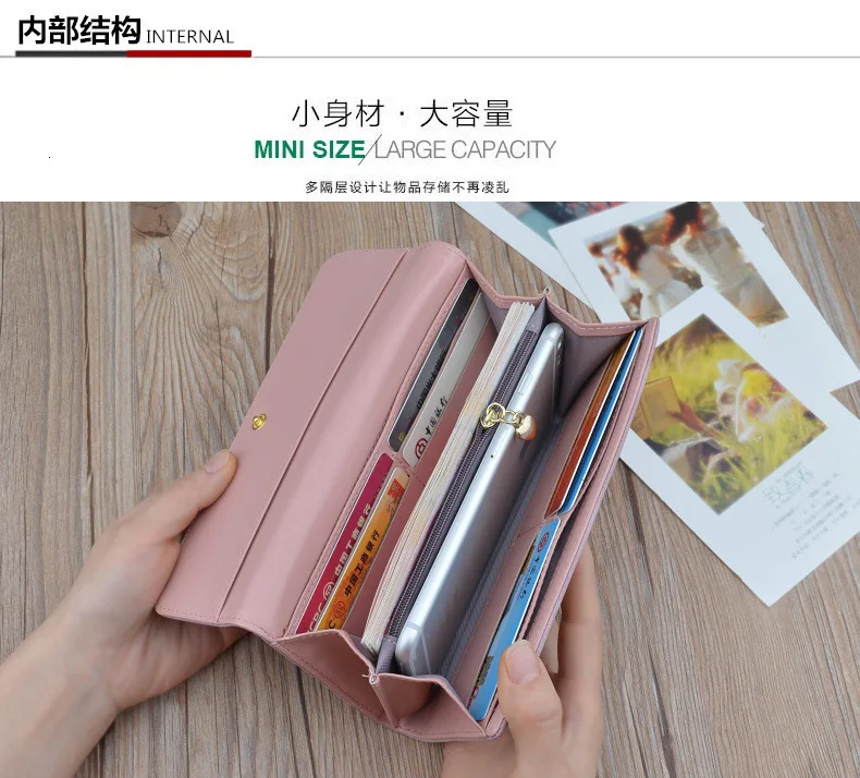 Модный длинный женский кошелек из искусственной кожи, Дамские кошельки, повседневный женский кошелек с застежкой