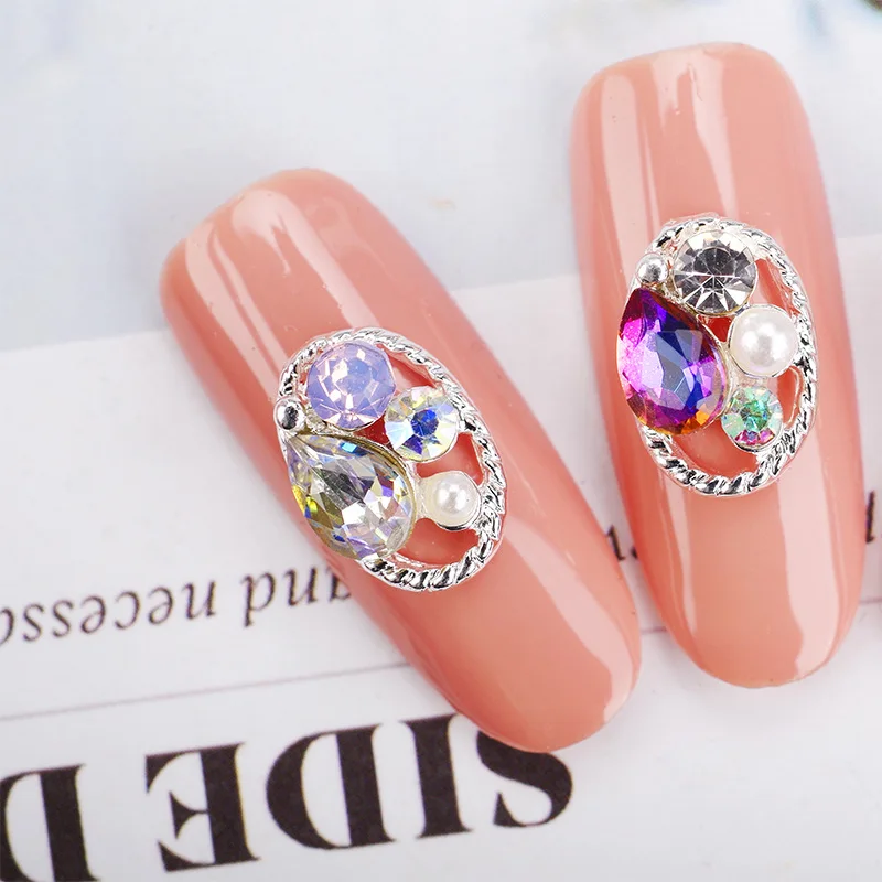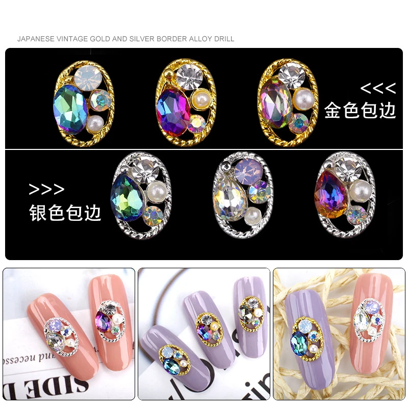100 шт. 3D полые овальные Жемчужные Подвески Стразы Красивые блестящие подвески для ногтей ювелирные аксессуары металлические для 3D украшения для ногтей