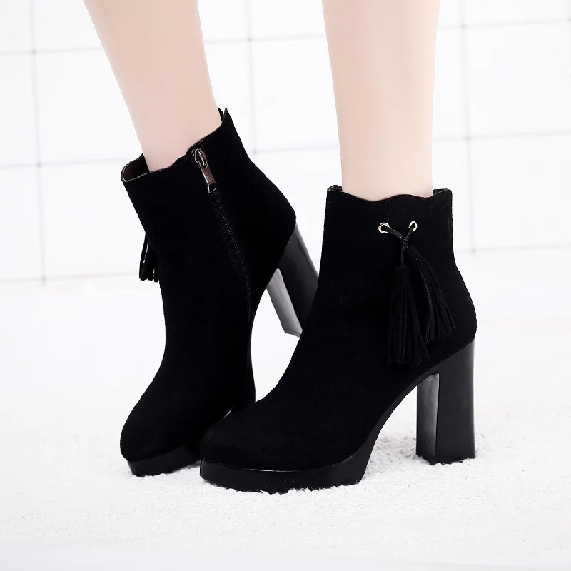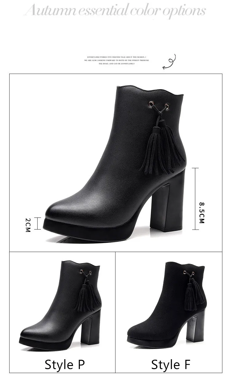 Женские ботинки на платформе и блочном каблуке, с острым носком, Осень-зима 2022