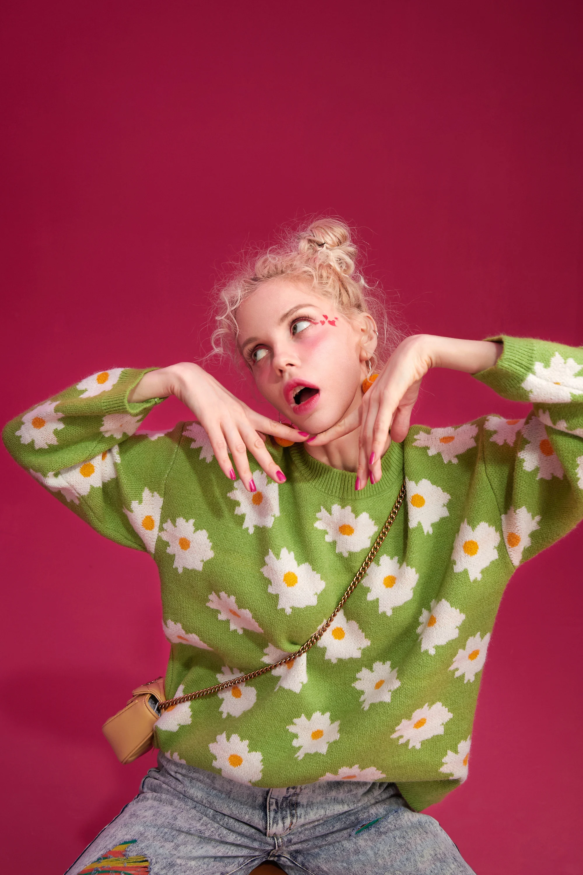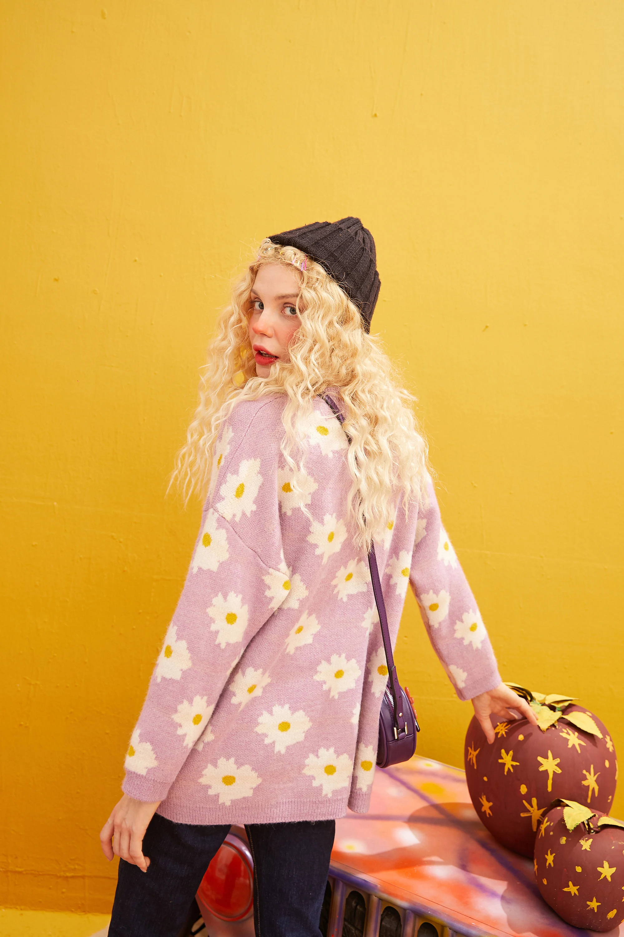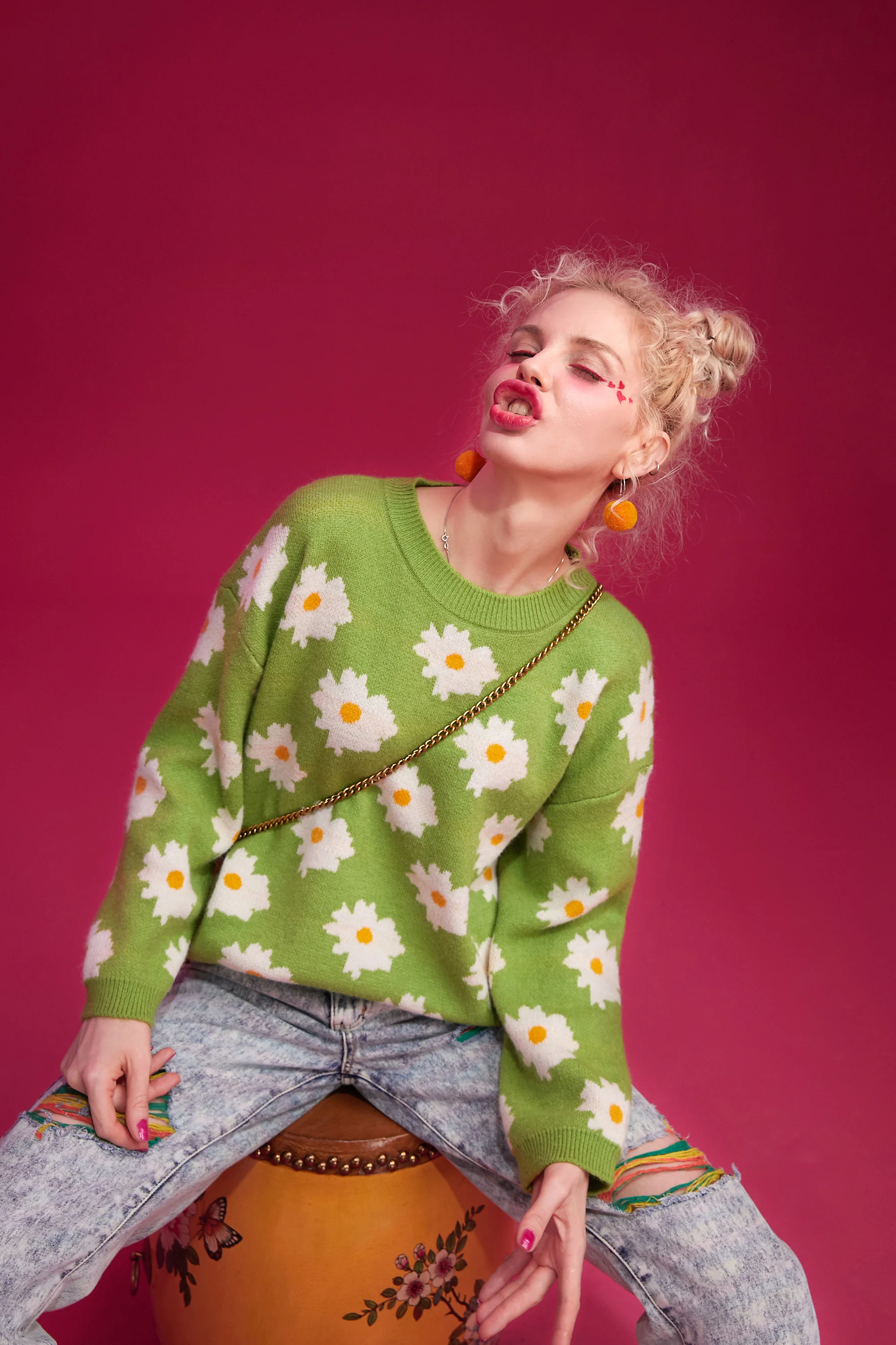 Женский разноцветный свитер ELFSACK, повседневный вязаный пуловер с цветочным принтом, офисные топы в Корейском стиле с длинным рукавом, зима 2019