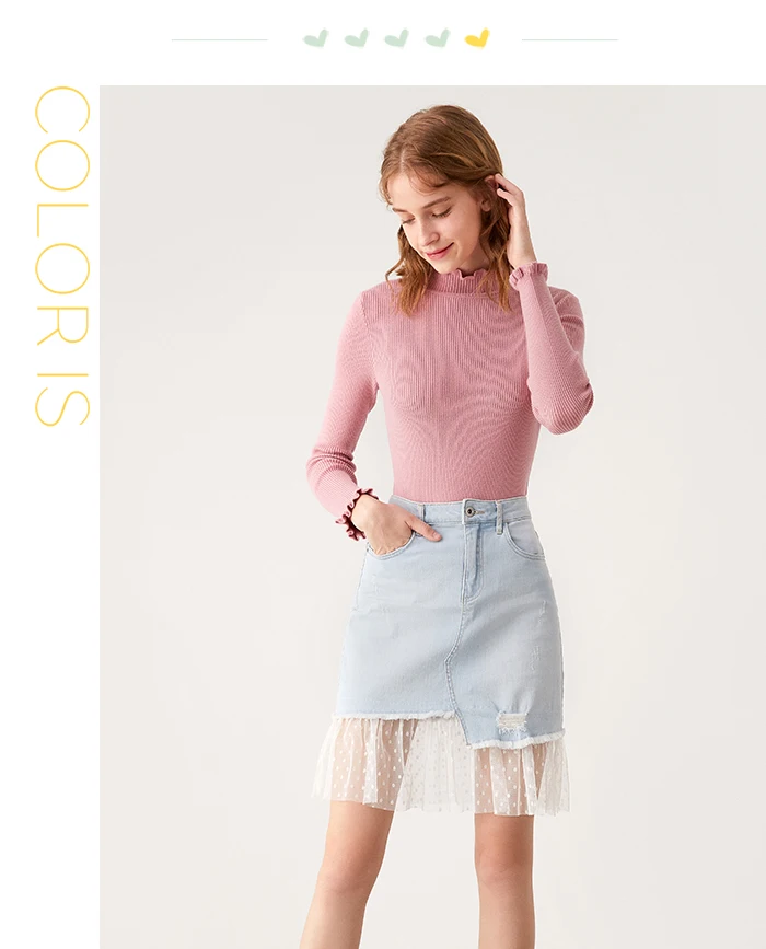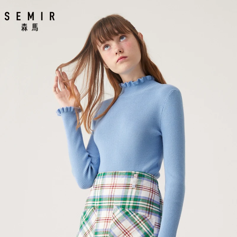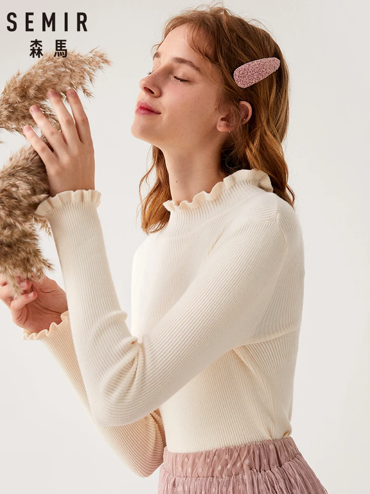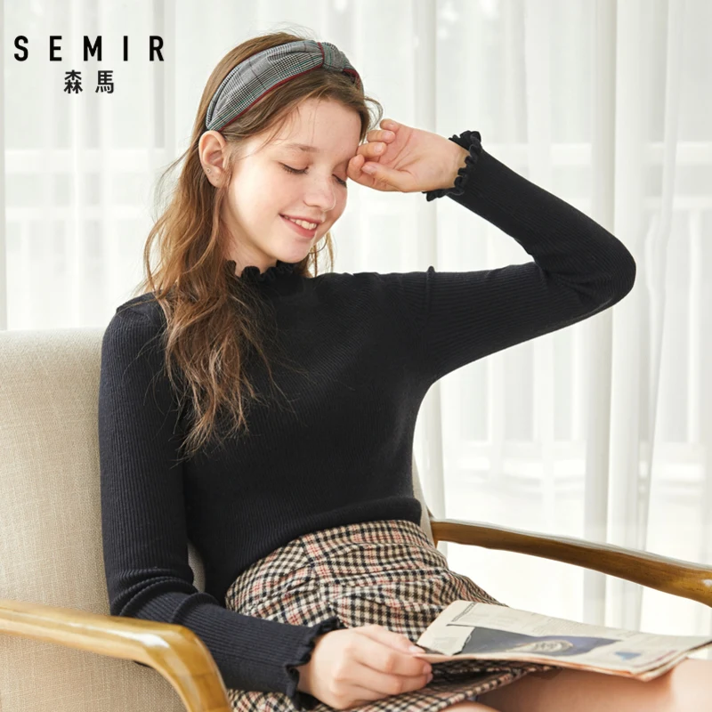 Женский свитер SEMIR, вязаный джемпер с оборками и вырезом, длинный рукав, зима 2020
