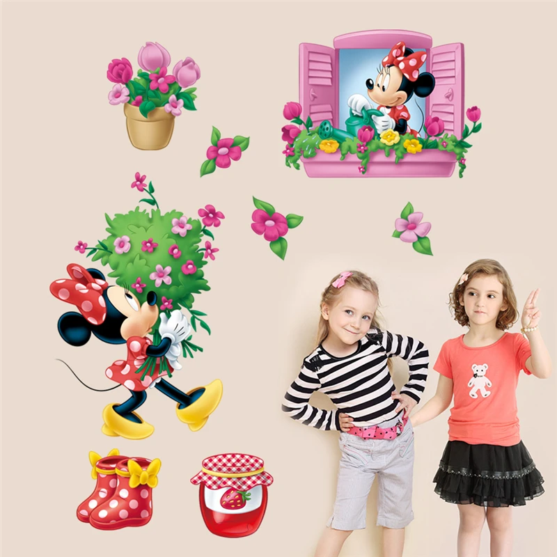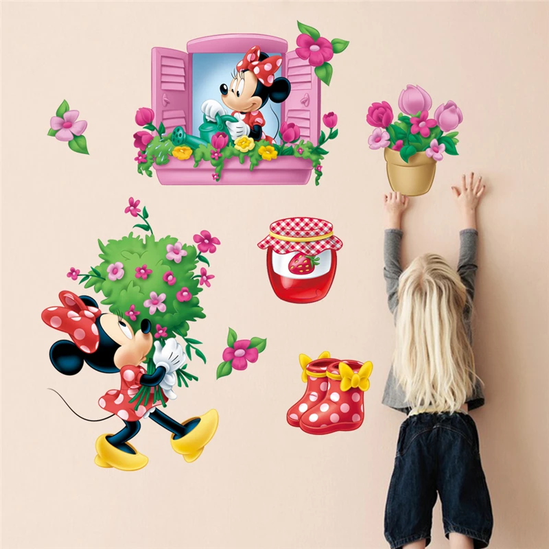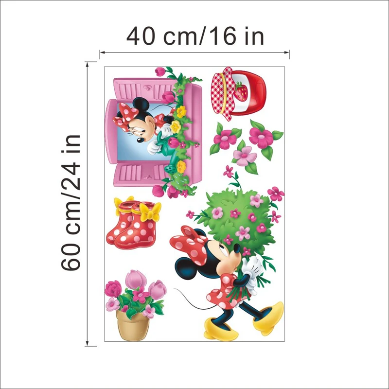 Наклейки на окна с цветами Диснея Минни 40*60 см, для детской комнаты, домашний декор, Мультяшные Наклейки на стены, ПВХ, настенные художественные плакаты сделай сам