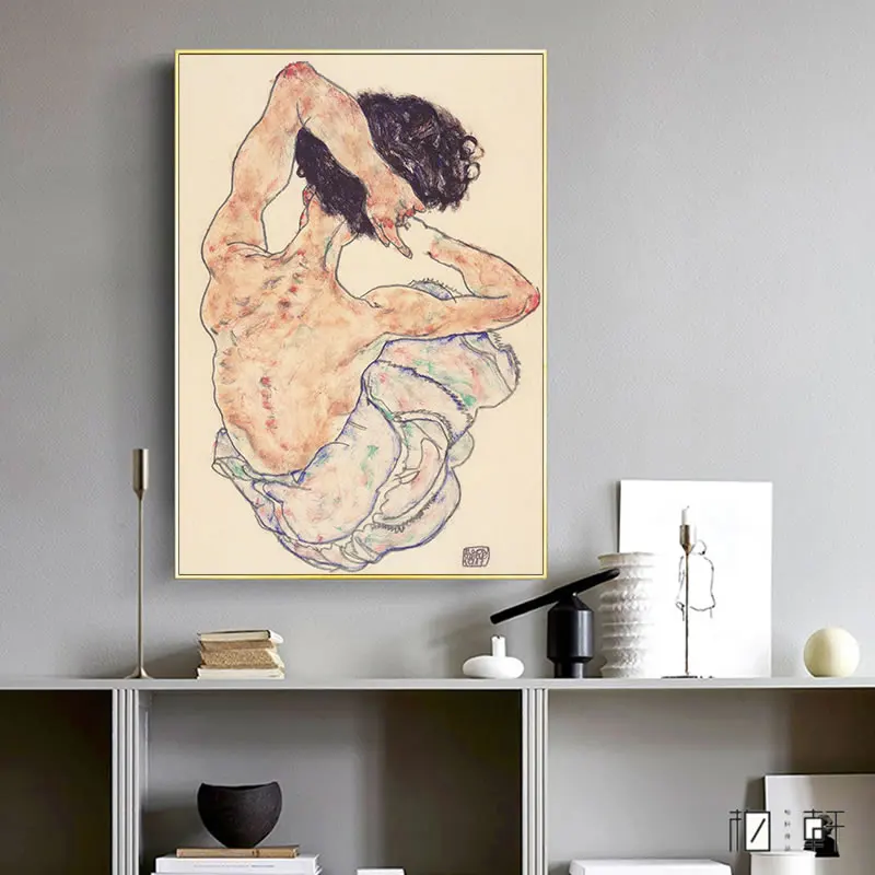 Эскиз фигуры Egon Schiele, цвет тела, печать на холсте, постер, нас...