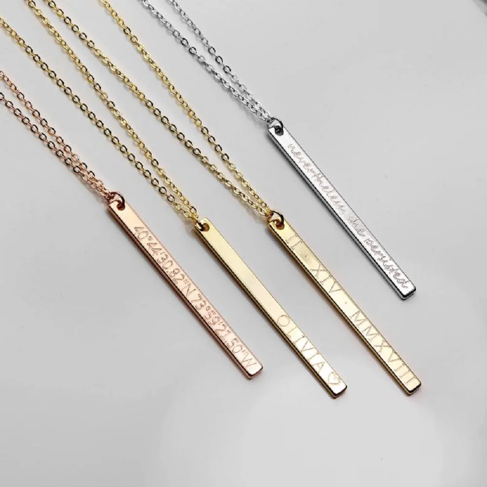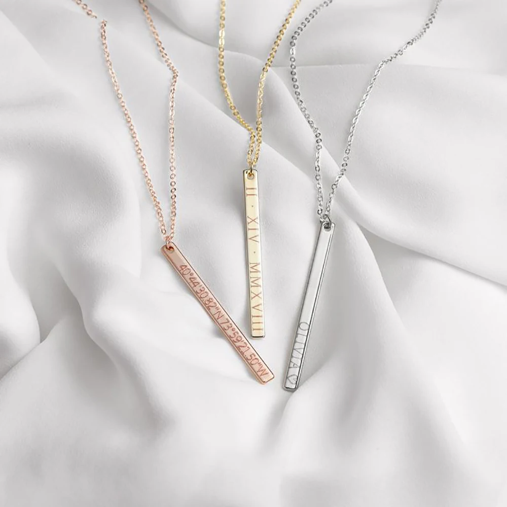 Новинка, индивидуальная гравировка, имя даты, кулон на заказ, вертикальное имя, Гламурное женское ожерелье из нержавеющей стали, Рождественский подарок BFF