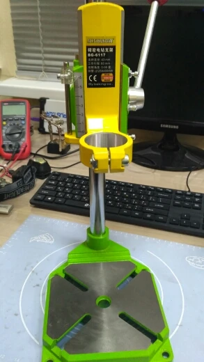 Доставка 2недели с момента оплаты. Упаковка хорошая,но коробка помята, но это не существенно. Требуется доработка. В отзывах об этом сказано. Конечно скопировали с Proxxon (28600), качество там другое, но цена почти 9тыс. руб. Если бы стоило 2500руб. с доставкой, то лучше не найдёшь. Если приложить руки, то будет действительно достойная стойка. Я покупкой доволен.