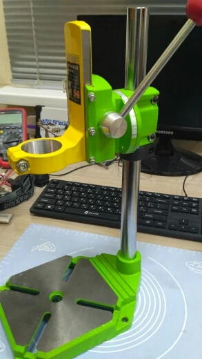 Посылка доставлена курьером в целости и сохранности через две недели после заказа) Стойка выполнена аккуратно с достаточной точностью для хобби. Как недостаток наклейки линейки длины и углов наклеены криво, лечиться прямыми руками. 2 пластины из Фторопласта очень пригодились. Все трущиеся детали пришлось смазать. Осталось получить мини фрезерный стол для дрели и проверить с этой стойкой. Идëт следом. Товар и продавца однозначно рекомендую.