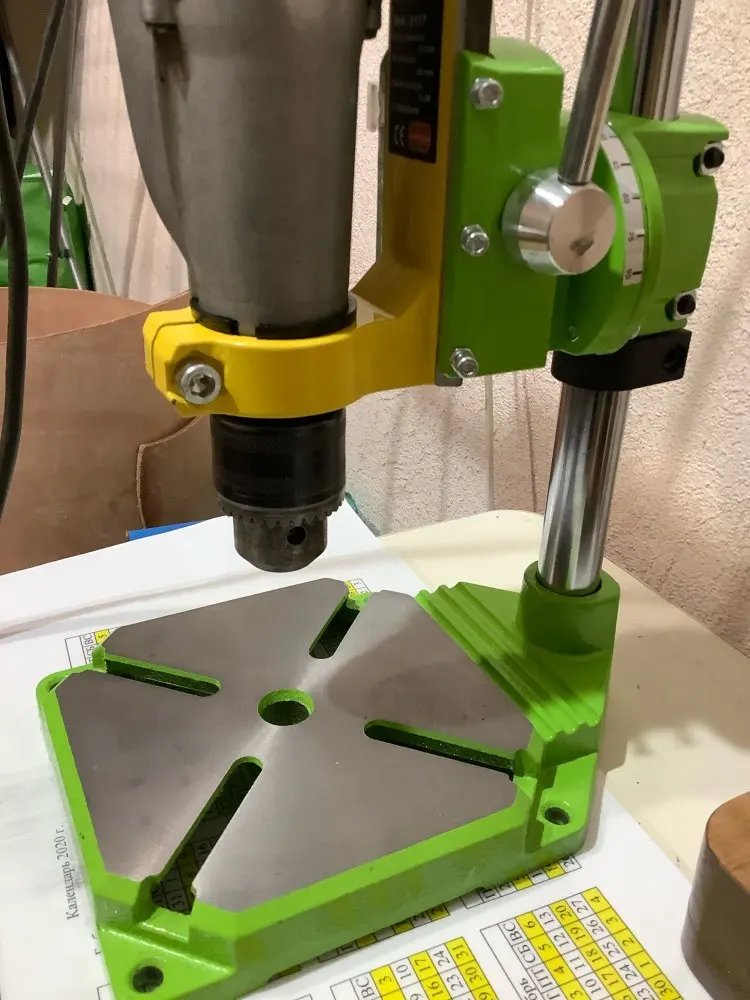 Это не не заменяет сверлильного станка,но может выручить для работы в домашних условиях.Для дрели (Макита),подошло отлично.Выписал для работы с кожей,доставка курьером,первая посылка пришла как конфетка целая.