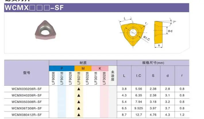 LF6018: специальные сорта для обработки нержавеющей стали, ультра-тонкие сплавы, с отличной прочностью и устойчивостью к адгезии к покрытию, подходит для обработки нержавеющей стали, особенно из аустенитной нержавеющей стали, А также подходит для резки жаростойкой легированной стали на низких скоростях.