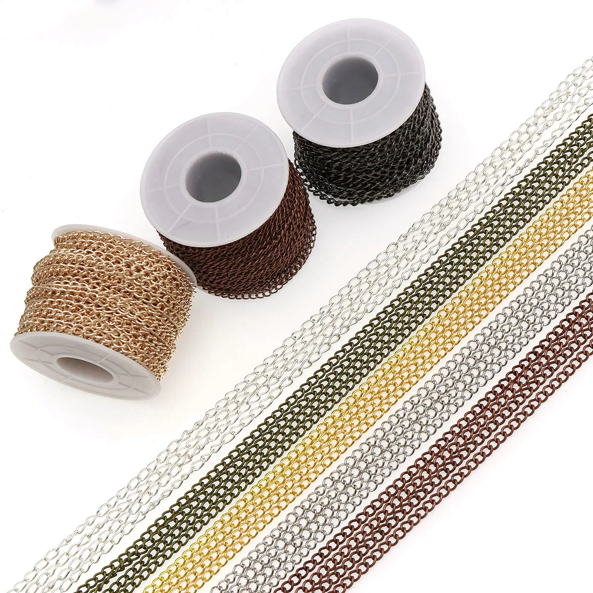 Цепочка металлическая для самостоятельной сборки, 5 млот, 0,60,81,0 мм, серебристая, золотистая, черная, бронзовая, изготовление ювелирных ожерелий