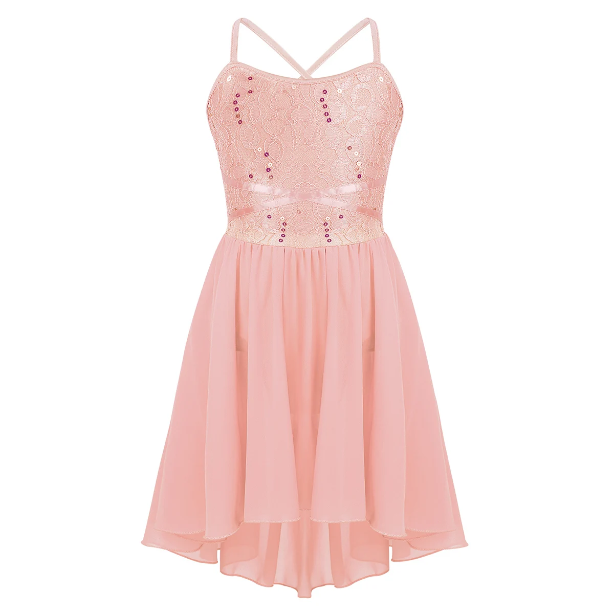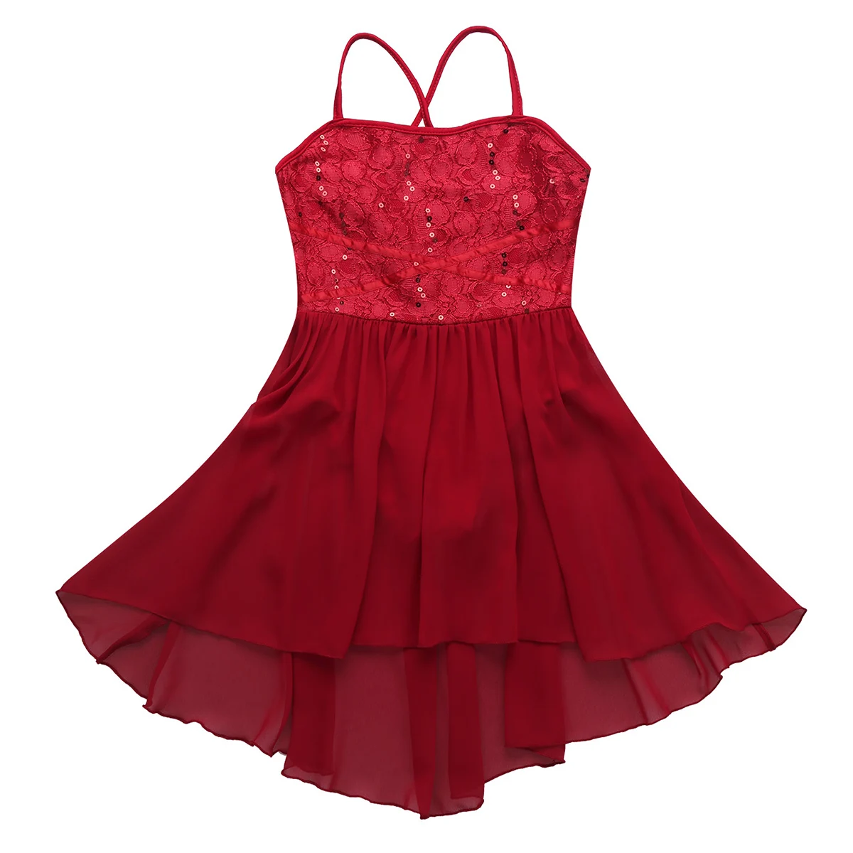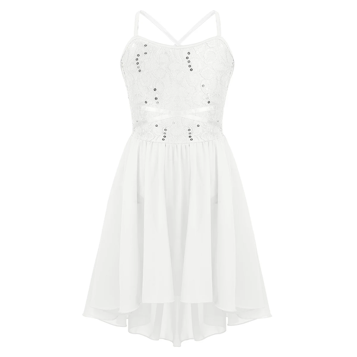 Лирическое танцевальное платье для девочек, балетное платье кружевное шифоновое платье с блестками и высоким низом для современного бального танца