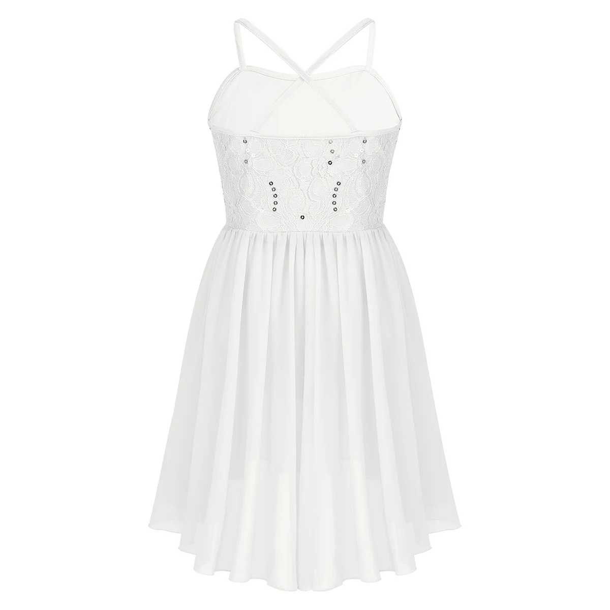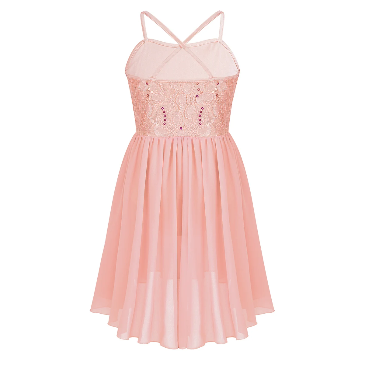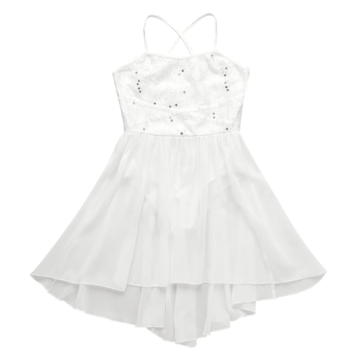 Лирическое танцевальное платье для девочек, балетное платье кружевное шифоновое платье с блестками и высоким низом для современного бального танца