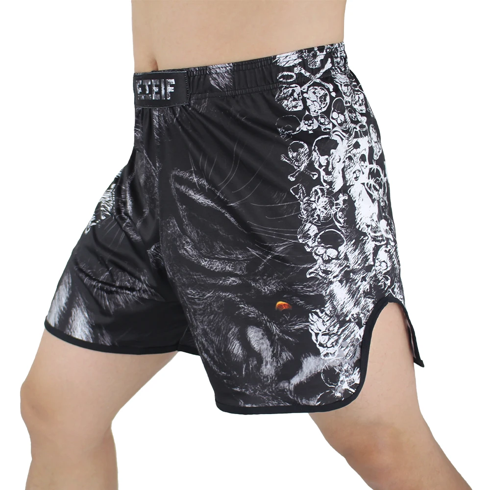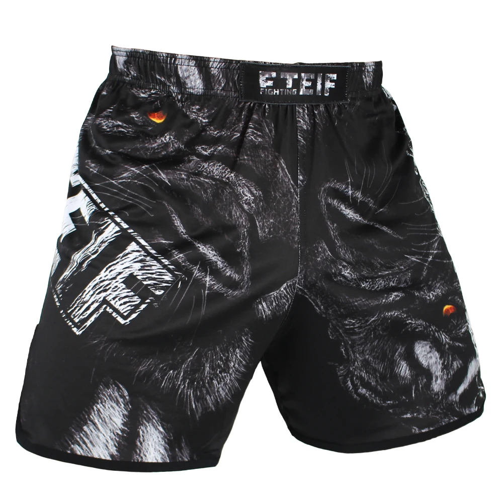 FTEIF черные шорты для бокса с головой тигра MMA, шорты из стрейчев...