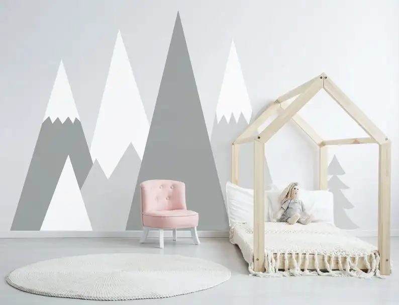 Скандинавский стиль, горы, настенные наклейки, детская комната, игр...