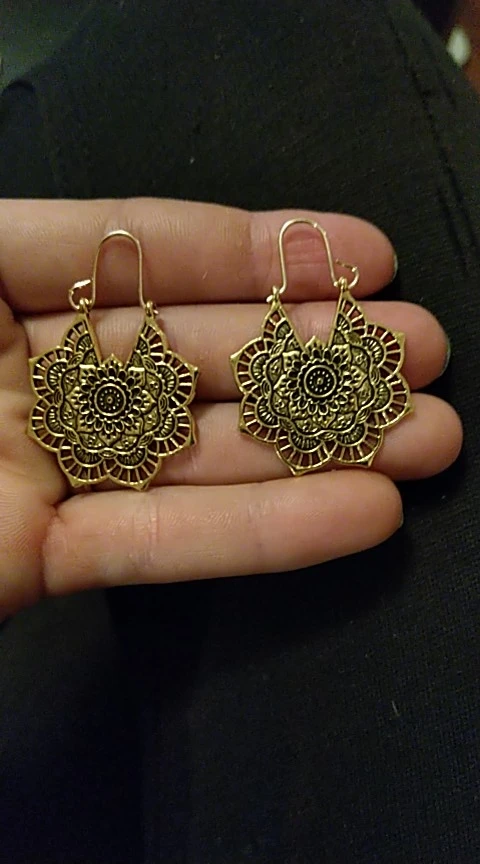 Вполне симпатичные серьги! Жаль, что рисунок односторонний, но с учетом их цены претензий нет. Фото продавца соответствует реальности, рисунок детализированный.