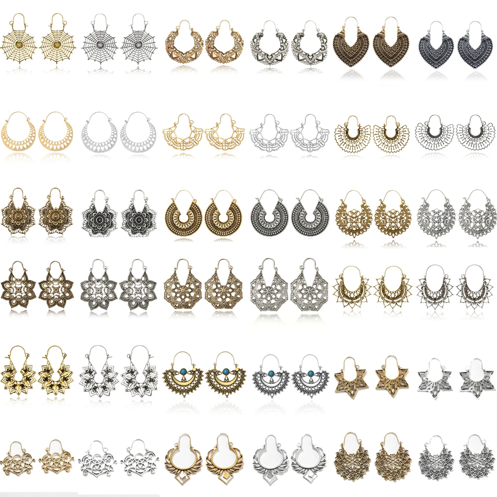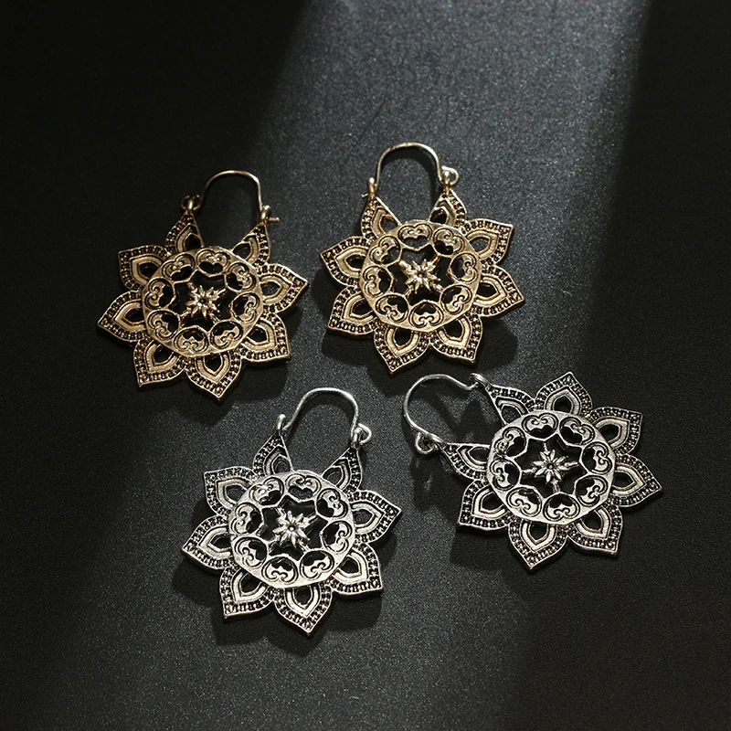 Женские винтажные серьги-подвески Tocona, 15 видов, с вырезанными цветами, цыганский родовой этнический стиль, висячие серьги