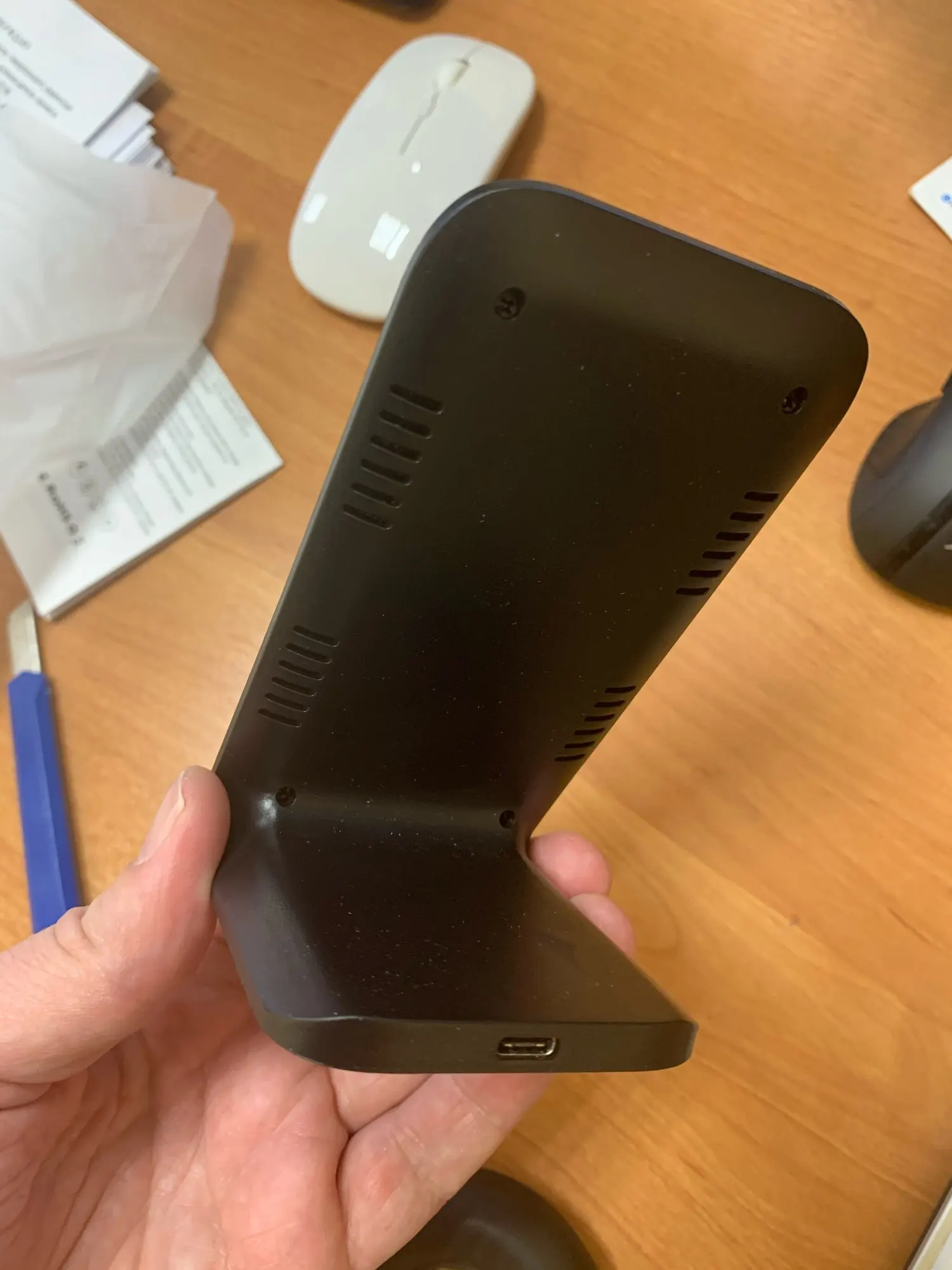 Доставка 10 дней супер. С зарядником от Ксиаоми на 2А работает вертикально и горизонтально 11 айфон. Не надо штекер тыкать и разбивать гнездо. Не надо в руке держать, удобный угол наклона и тыкаешь пальцами одной руки. Годная и удобная вещь.