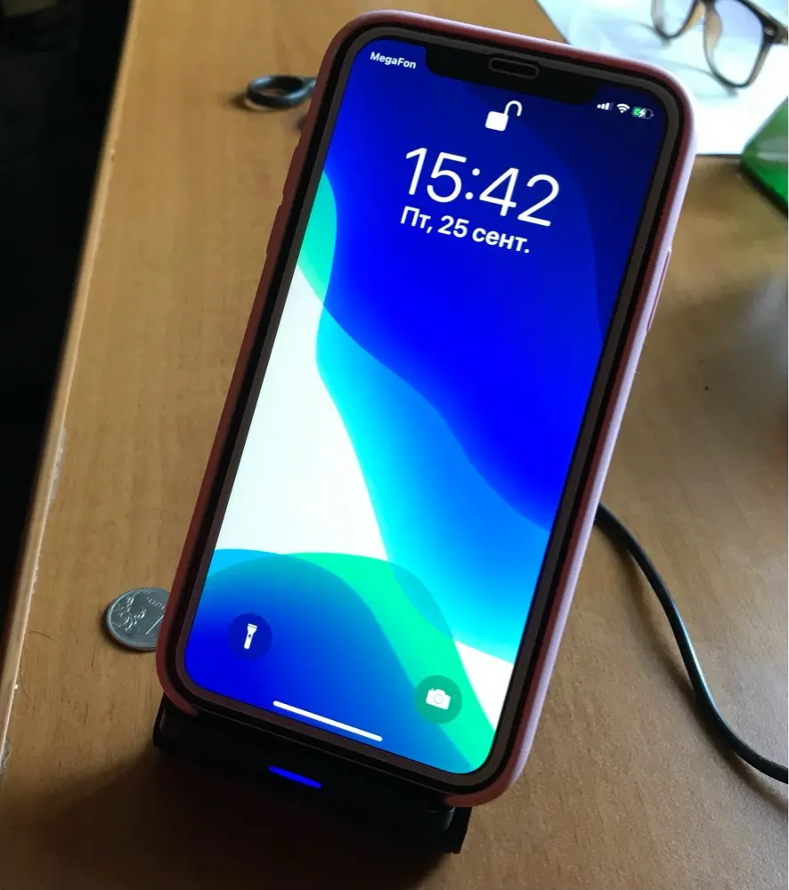Пришло быстро. На счет 15w большие вопросы. Айфон и лежа и стоя заряжается