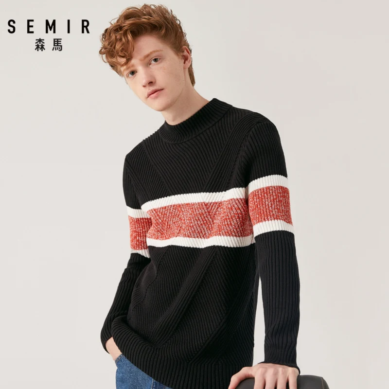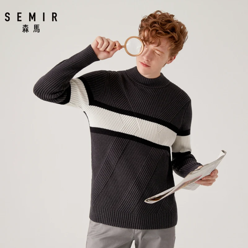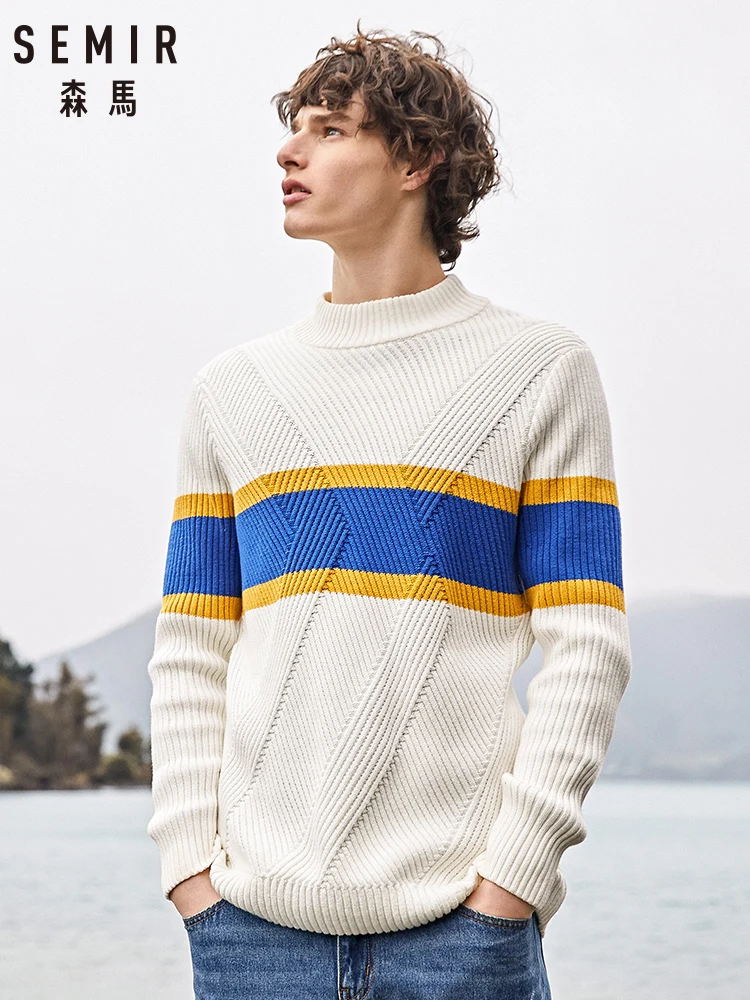 Свитер SEMIR мужской с полувысоким воротником, плотный свитер, новинка осень-зима 2021, корейский тренд в полоску