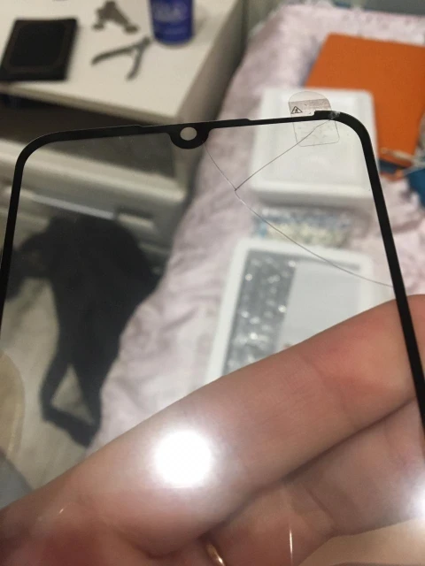 дошло быстро, все целое но отцентровав стекло по камере и логотипу- с левого края по всей длинне стекла полоса воздуха которая не удаляется ни как !! нужно видимо выбирать или делать ровно по камере и надписи но с полосой или чуть сбивать в право