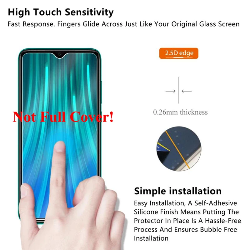 Защитное стекло для xiaomi redmi note 8 pro, закаленное, 2 шт.лот