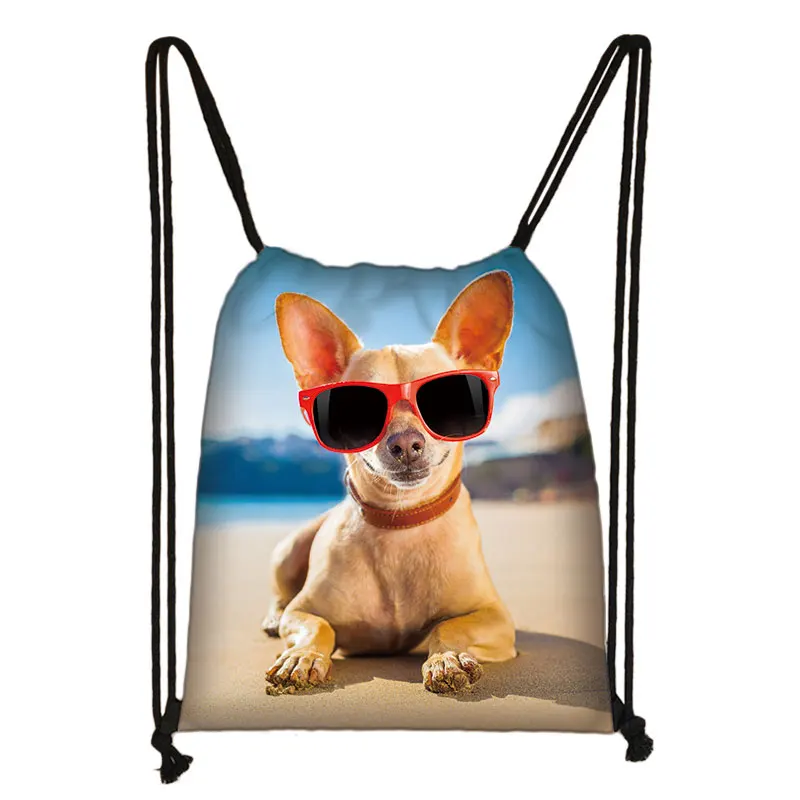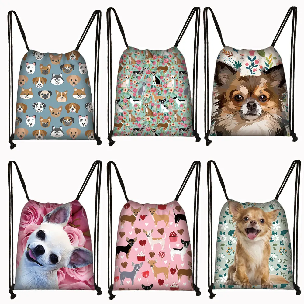 Милых собачек для чихуахуа шнурок Сумка женская и Мужская модная сумка для хранения для путешествий для мальчиков и девочек подросткового возраста рюкзак вечерние сумки для покупок