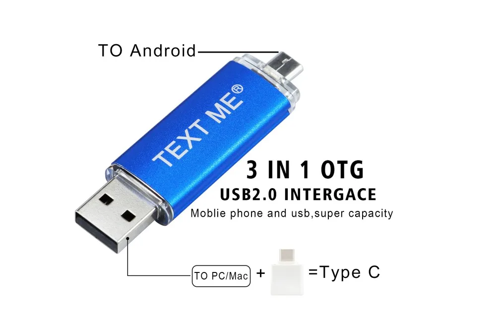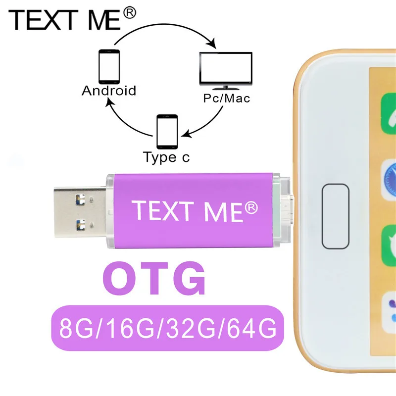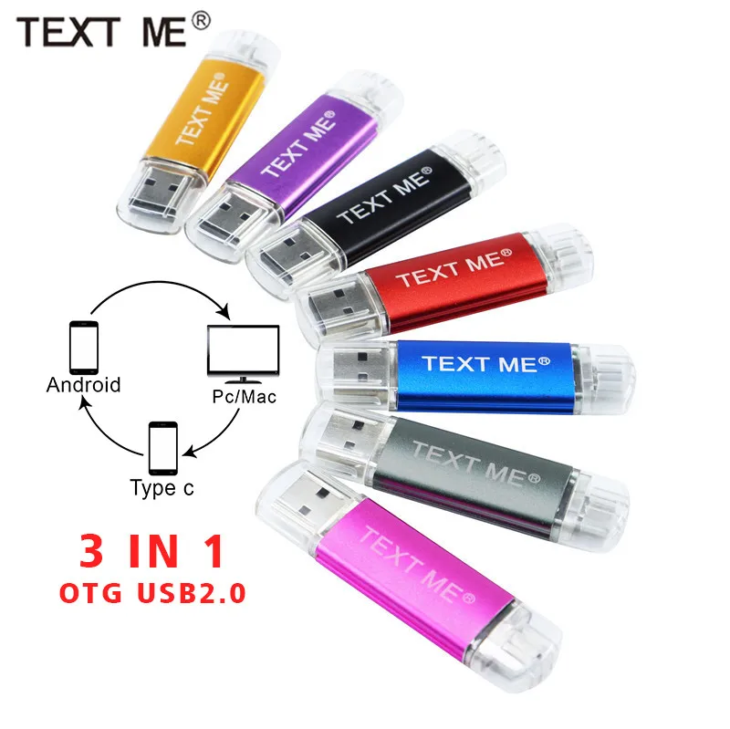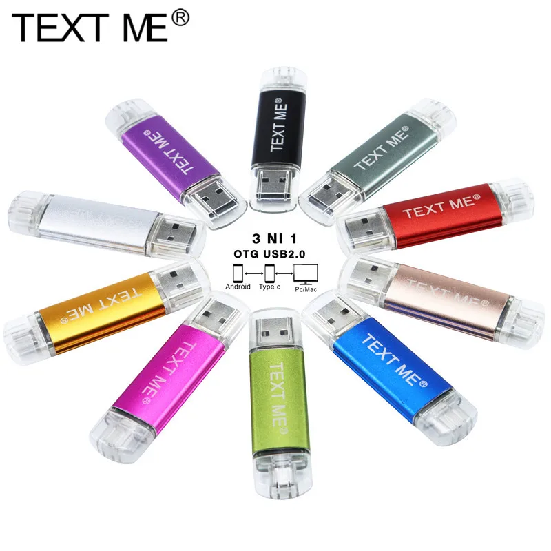 Флеш-накопитель TEXT ME OTG usb 2,0, 64 ГБ, 4 ГБ, 8 ГБ, 3 в 1, OTG Type c, 16 ГБ, 32 ГБ