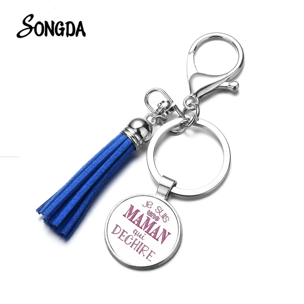 Женские туфли на танкетке на очень госпожа брелок Je Suis Une Maman Qui Dechire Письмо печати красочные брелок для ключей с кисточкой учителя подарок