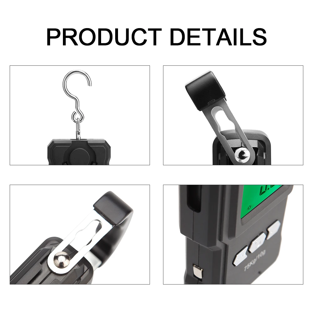 Электронные весы, 75 кг10 г, 50 кг5g, с цифровым ЖК-дисплеем, шкала подвесного крючка, с измерительной лентой, для рыбалки, путешествий