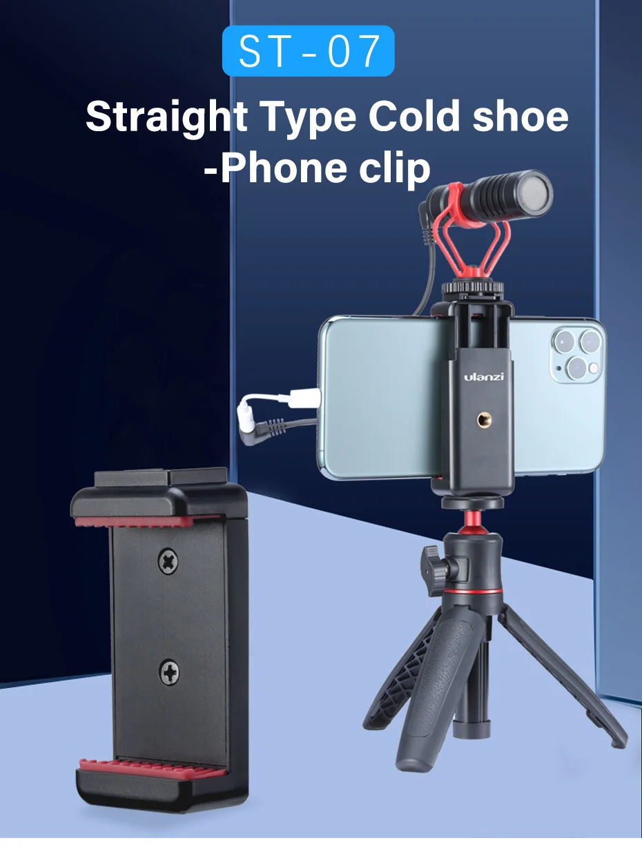 Холодный башмак Ulanzi ST-07, зажим для телефона с выдвижной палкой, штатив с винтом 14, держатель для телефона с микрофоном для видеозаписи