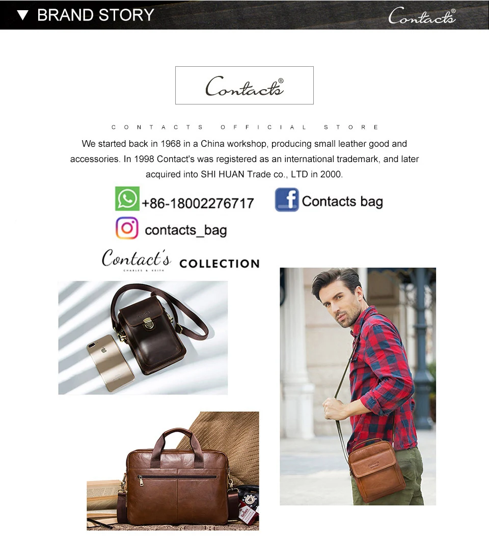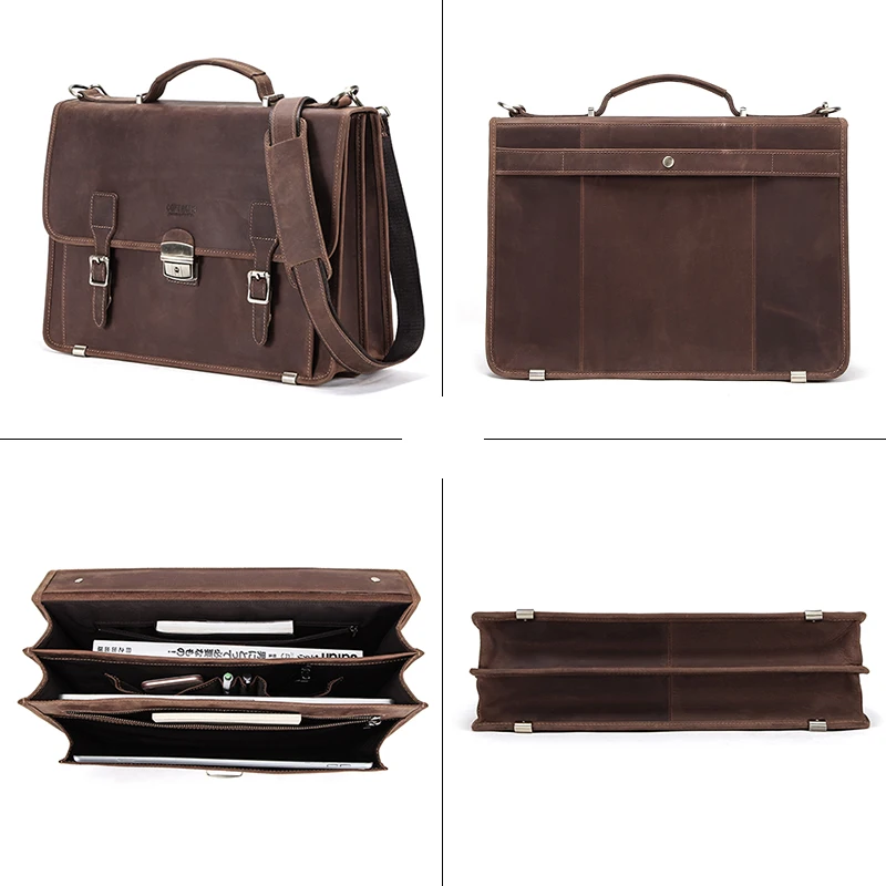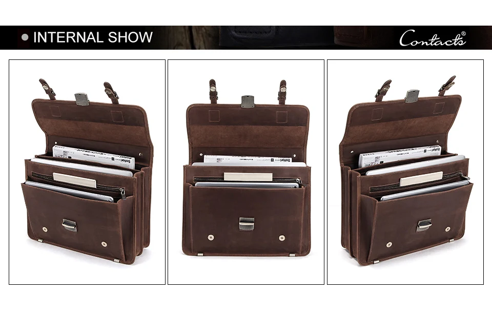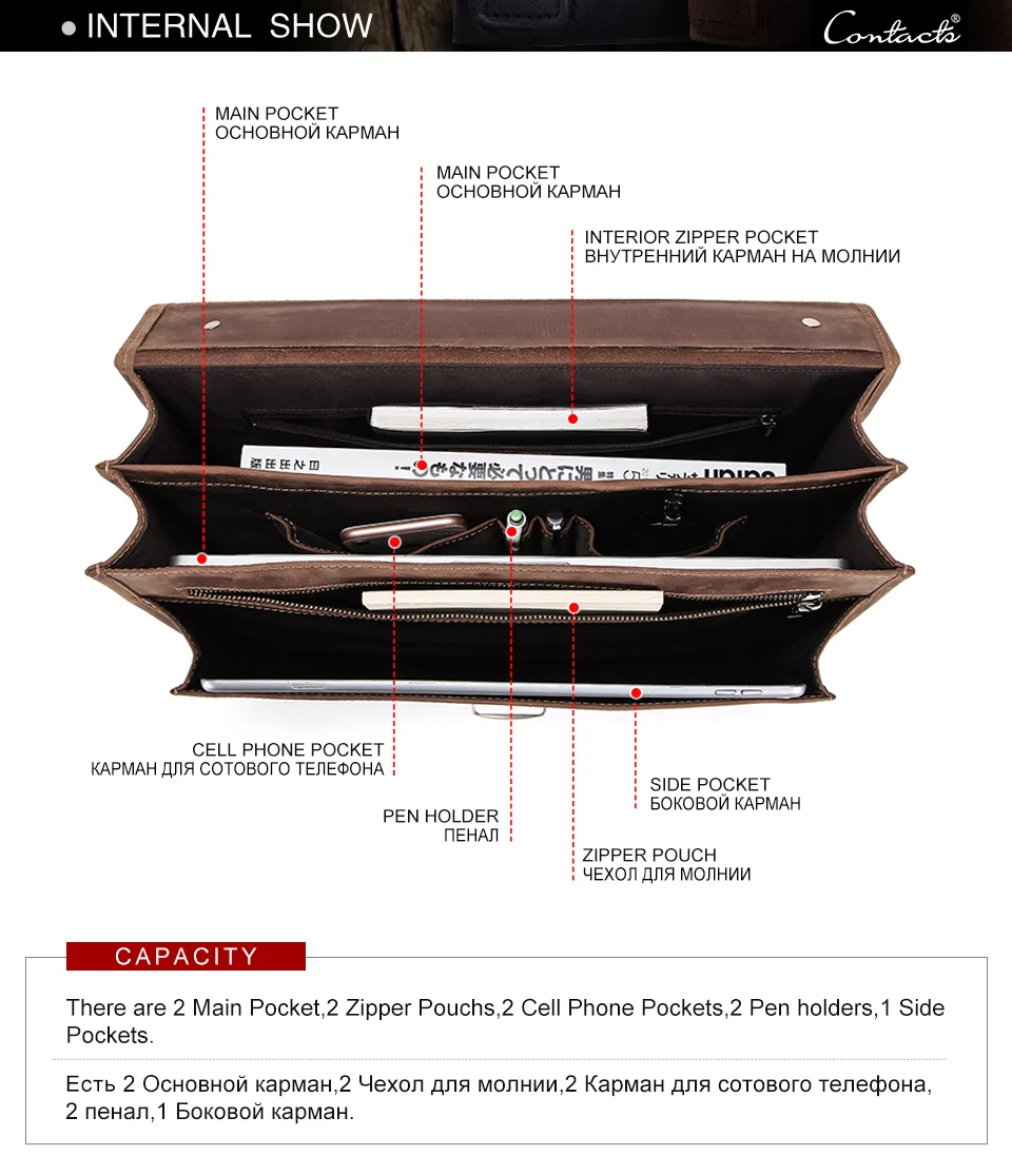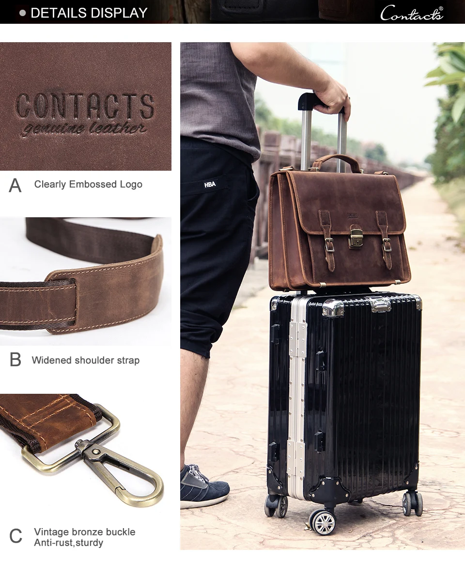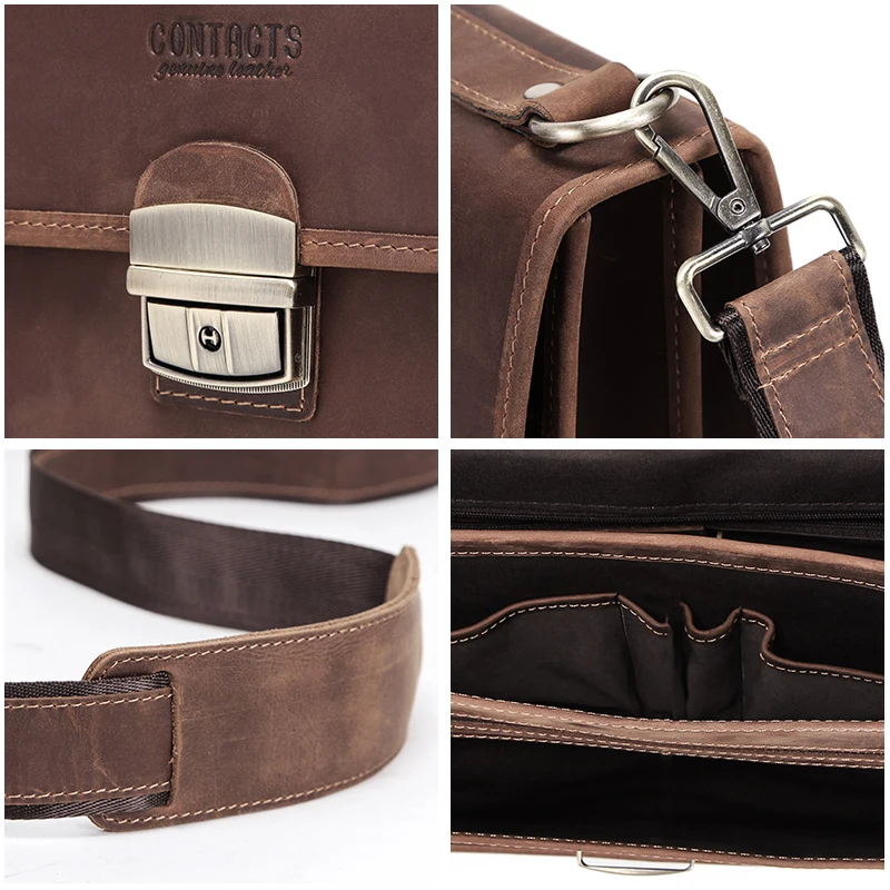 Мужская сумка CONTACT'S, кожаный портфель Crazy Horse в стиле ретро, для ноутбука 14 дюймов, деловая сумка на плечо, большая емкость