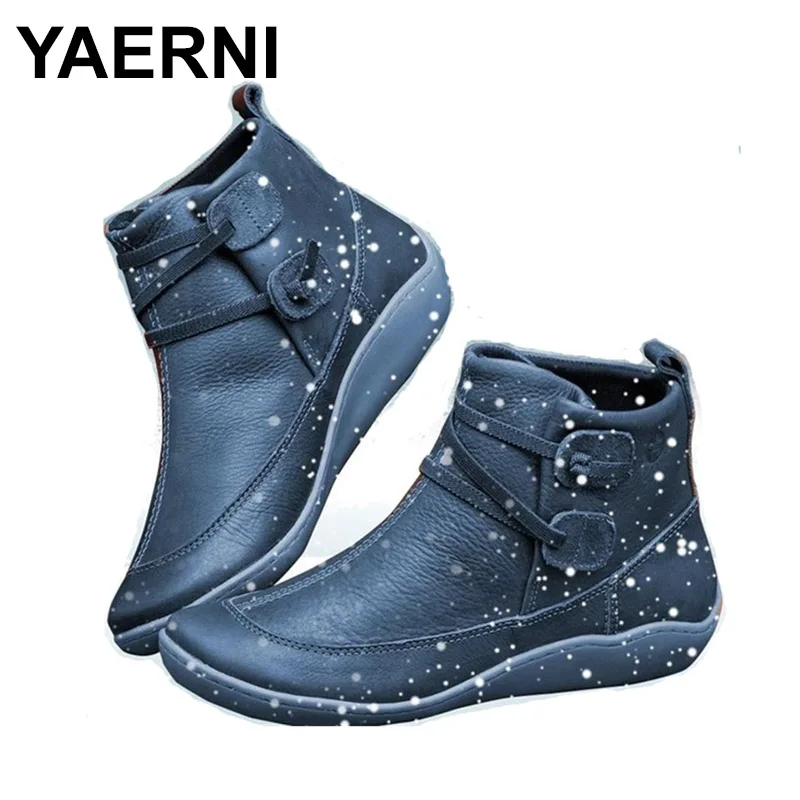YAERNIPUженские ботильоны из искусственной кожи; Зимние ботинки; Осенняя обувь на плоской подошве; Женская обувь из короткого плюша; Винтажная обувь в стиле панк с перекрестными ремешками