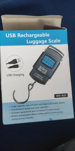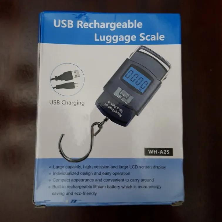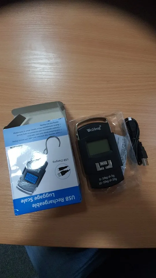 Всем привет! Получил посылку очень быстро, всего за 7 дней. Весы очень удобные. Новая версия со встроенной батареей. Кабель для зарядки прилагается. Табло с синей подсветкой. Цифры видны чётко и хорошо. Крючок крепкий, ручка удобная и складывается. Размер компактный. Пришло в оригинальной упаковке. Рекомендуется к покупке. СПАСИБО продавцу и доставке AliExpress ⭐ ⭐ ⭐ ⭐ ⭐