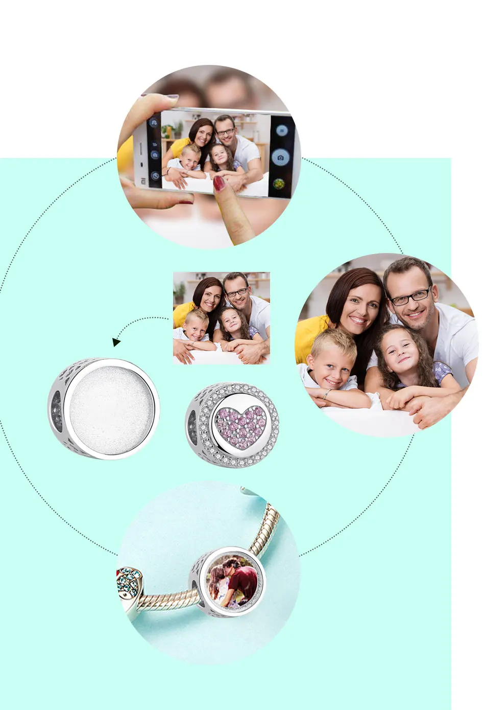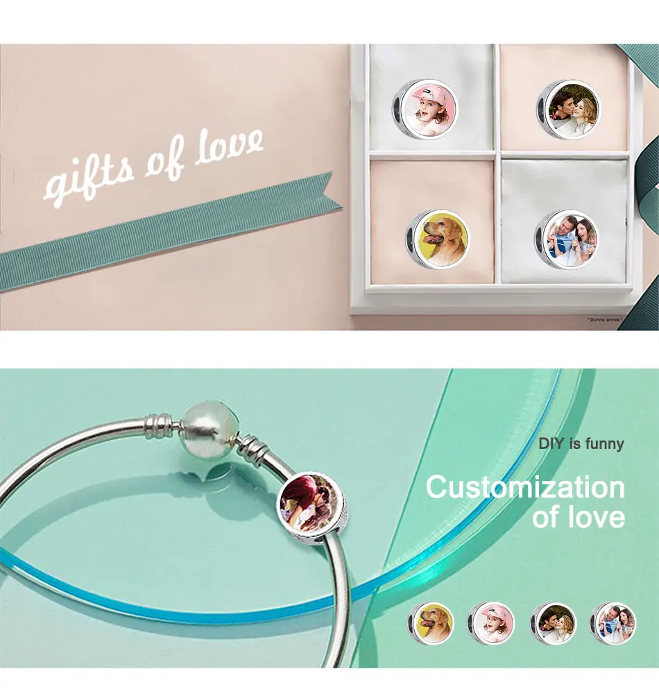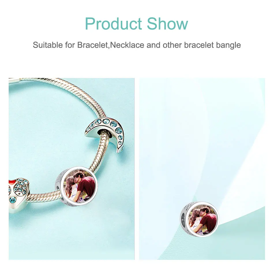 Очаровательные бусины-шармы ELESHE с реальной фотографией, серебрян...