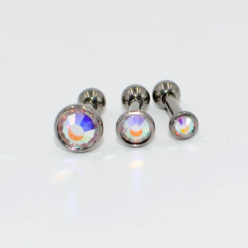 Серьга-гвоздик из титана G23 для пирсинга ушной хрящевой ткани козелка и завитка ушной раковины, разноцветная серьга-гвоздик с цирконом, ювелирные изделия разных размеров, 3 шт., 100%
