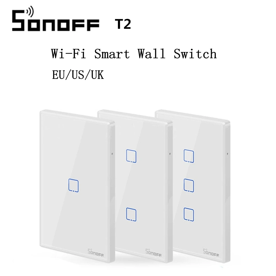 Интеллектуальный выключатель света SONOFF T2 по стандартам ЕССШАВеликобритании партии 123 с 433 МГц WI-FI настенный переключатель RF настенный сенсорный выключатель серии TX для умного дома работать с Alexa Google