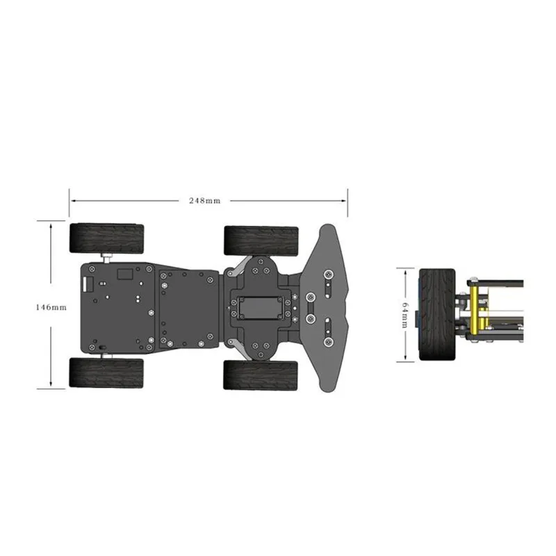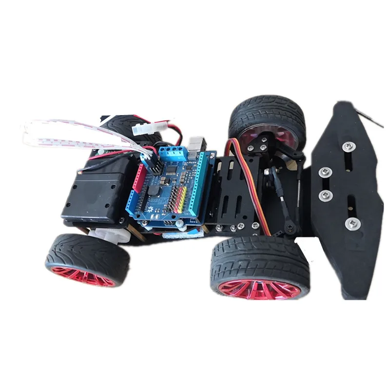 Это новая конструкция устройства позволяет ему двигаться с 4-х колесные шасси автомобиля, и обычные 4-х колесных дисков отличается от того, что этот автомобиль с задним приводом плюс спереди рулевого механизма для достижения автомобиля вперед, назад и поверните влево и вправо. И профессиональный принцип дистанционного управления гонок, использование двух стержней через рулевое управление для управления направлением автомобиля. Кроме того, механизм рулевого управления заднего колеса также был изменен. Алюминиевый крепежный элемент полностью сформирован с мотором, и двигатель плотно связан с приводным валом. Мотор принимает цельнометаллический мотор-редуктор. Если вы преследуете высокую скорость, до тех пор, как 25 мм диаметр вала двигателя может быть. Заднее колесо включает в себя два фланцевых подшипника для обеспечения более гибкого вращения двигателя. Из-за использования более драгоценных металлических деталей (подшипники, Передача передач, шатун, металлический двигатель, рулевая чаша, многофункциональный кронштейн и т. д.), что является дорогим, пользователь может сравнить достоинства, конечно, рынок также дешевле, чем шасси, Работа не на уровне. У нас есть только фиксированные монтажные отверстия для платформы arduino, если вы другие платформы, вам нужно пробить отверстия или попытаться установить.
