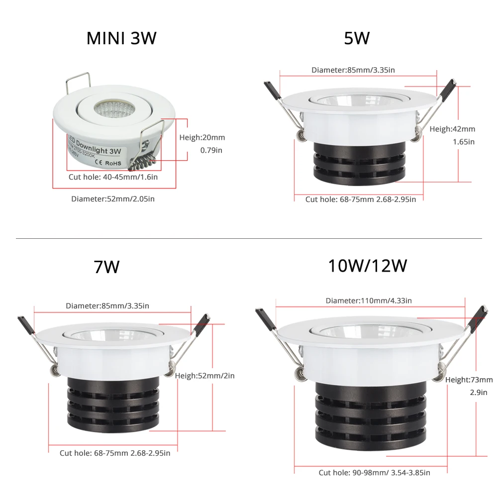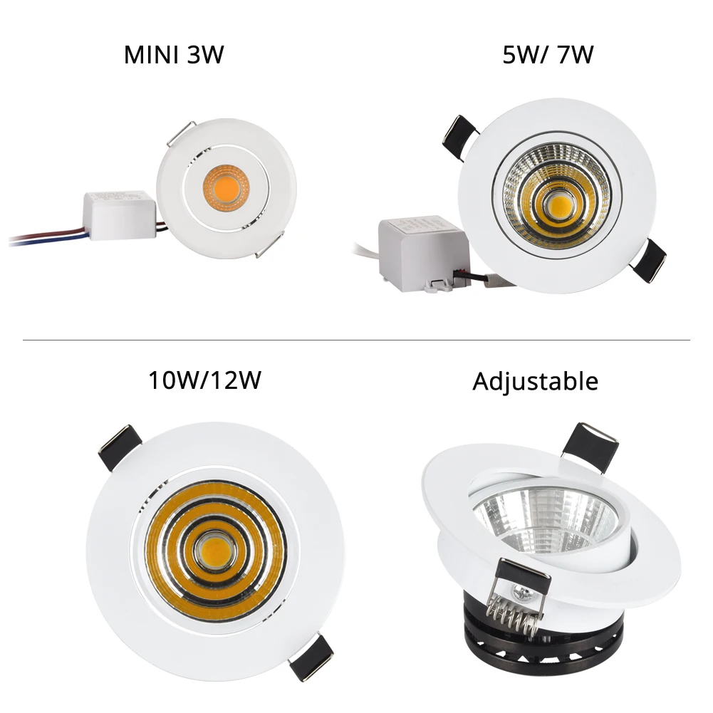 Точечный светодиодный светильник с COB матрицей, приглушаемый серебристый, белый, черный профиль, миниатюрный светильник для дома, новый дизайн, 3 Вт, 5 Вт, 7 Вт, 12 Вт