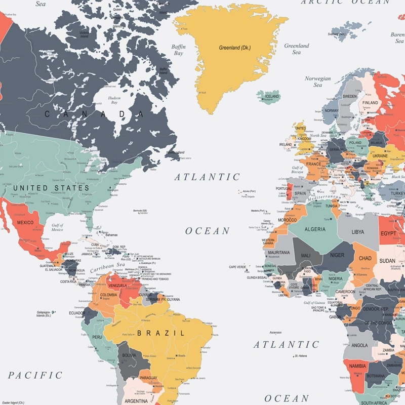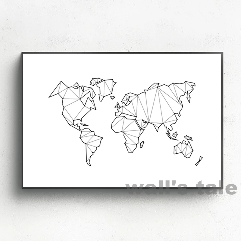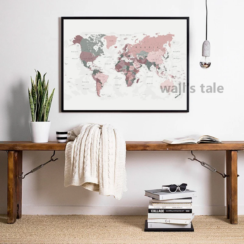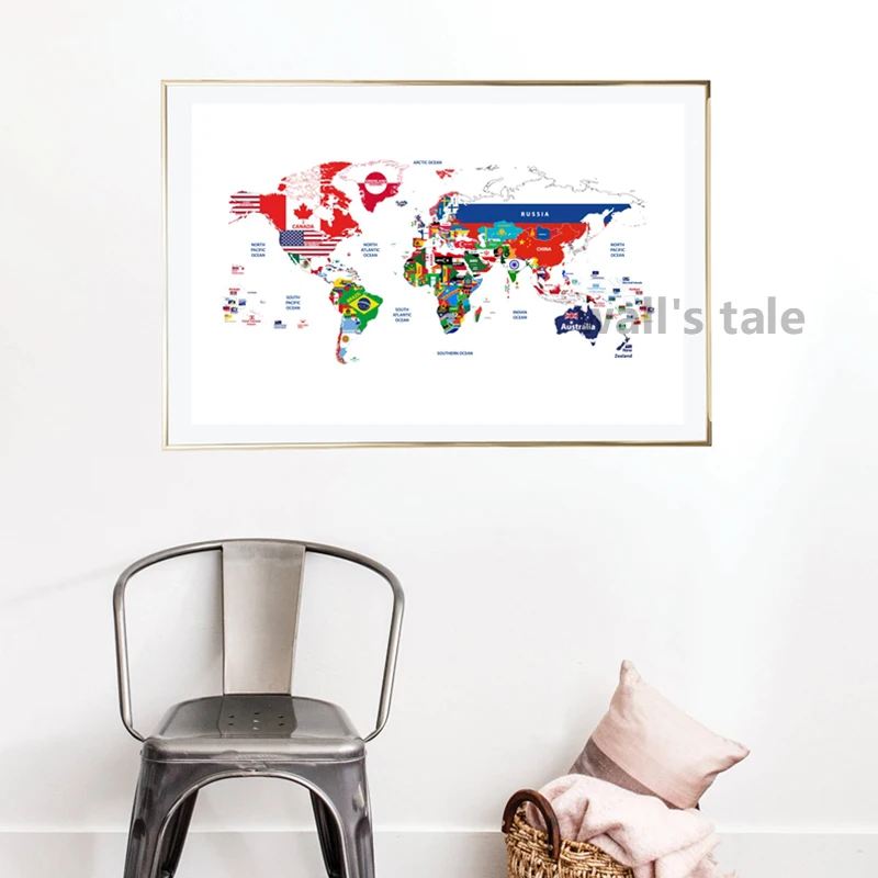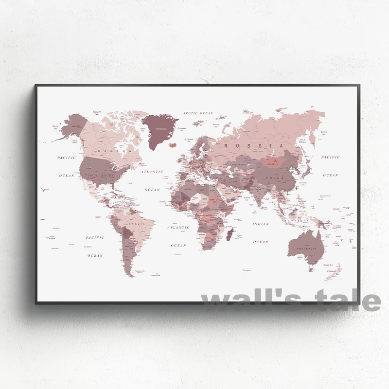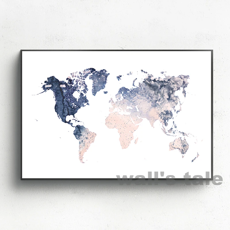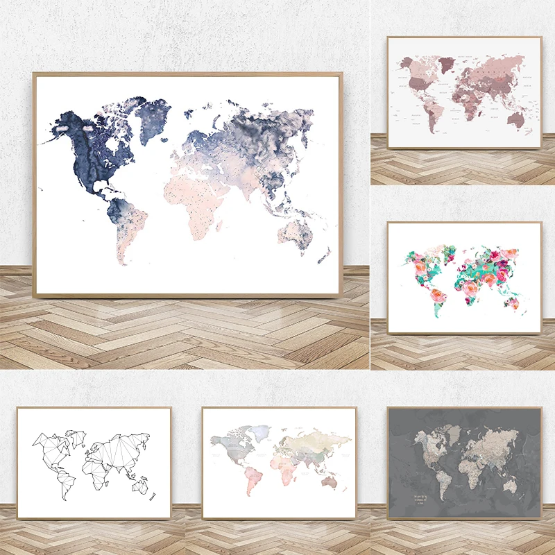Карта мира плакат печать счастливых цветов настенная живопись холст коралловый синий желтый бирюзовый розовый Настенная картина для гостиной домашний декор