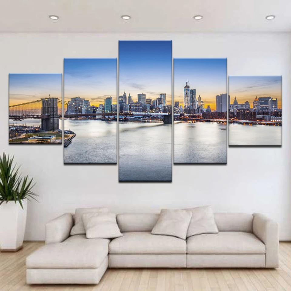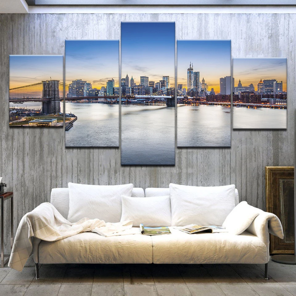 5 панелей, HD печать, Нью-Йорк, голубое небо, Современная печать на холсте, художественная живопись для украшения дома, гостиной