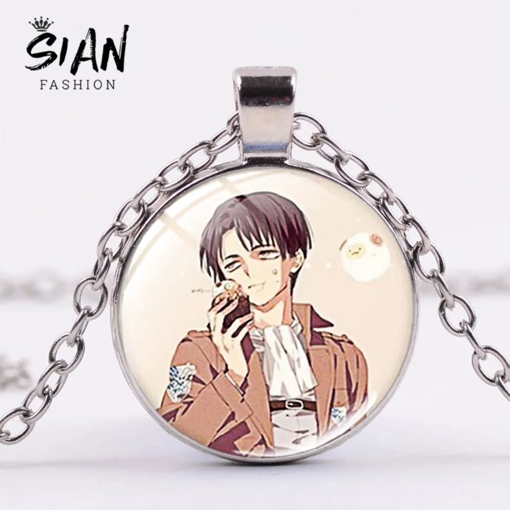 Ожерелье с эмблемой Эрена и Леви ривайля из аниме Атака Титанов, кулон со стеклянным кабошоном, ювелирное изделие унисекс, сувенир