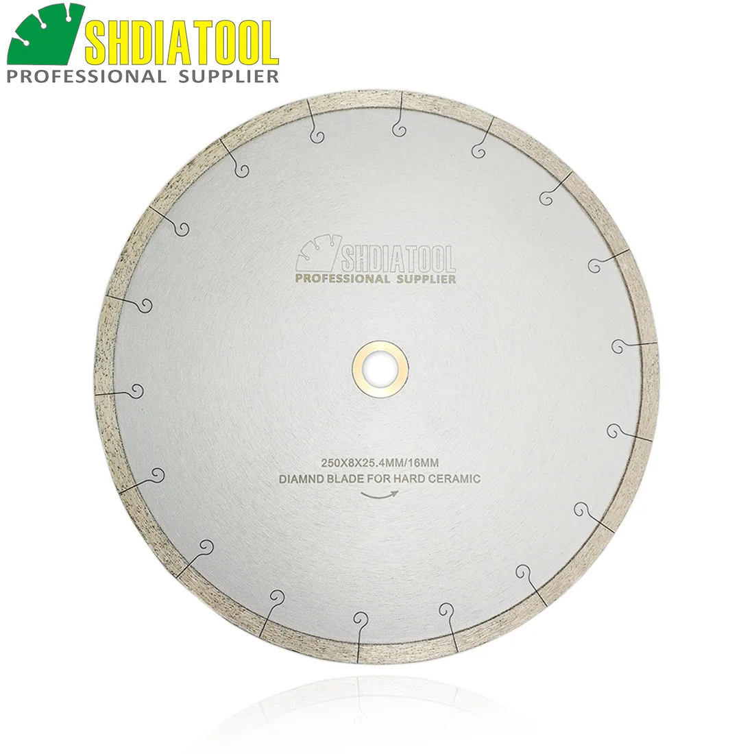 Диаметр 10 "/250 мм; Высота сегментов 8 мм; Толщина сегментов 1,6 мм; Диаметр отверстия: 25,4 мм с редуктором 16 мм;