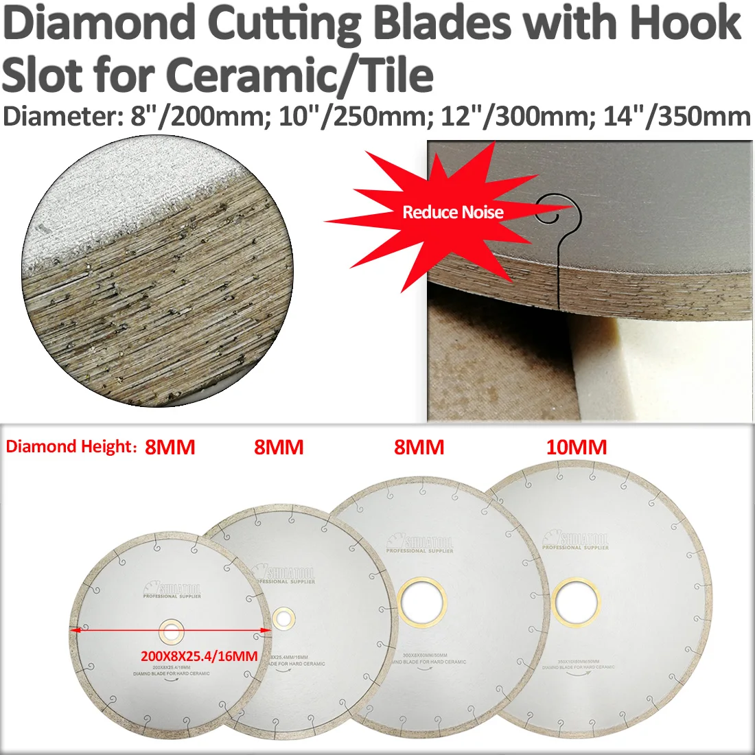 Алмазные Керамические пилы SHDIATOOL, комплект из 2 дисков диаметром 810 дюймов с отверстием для крючка для резки керамической плитки, мрамора, 200250 мм