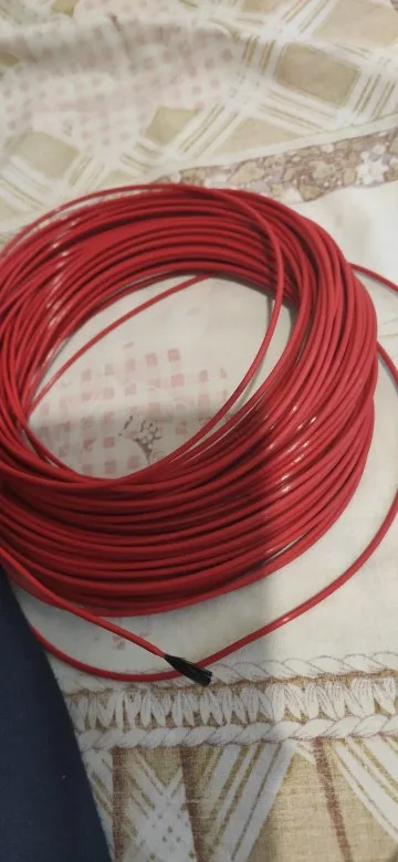 Провод 2 мм тонкий, оболочка жёсткая, типа ПВХ. До этого покупал в силиконовой оболочке он более мягкий и толще 3 мм. Покупаю для прогрева плинтусов в осенний и весенний период, чтоб не плесневели стены. Соединяю 15 метров напрямую в 220 вольт. Расход примерно 100 Вт в час, греет градусов 45-50.