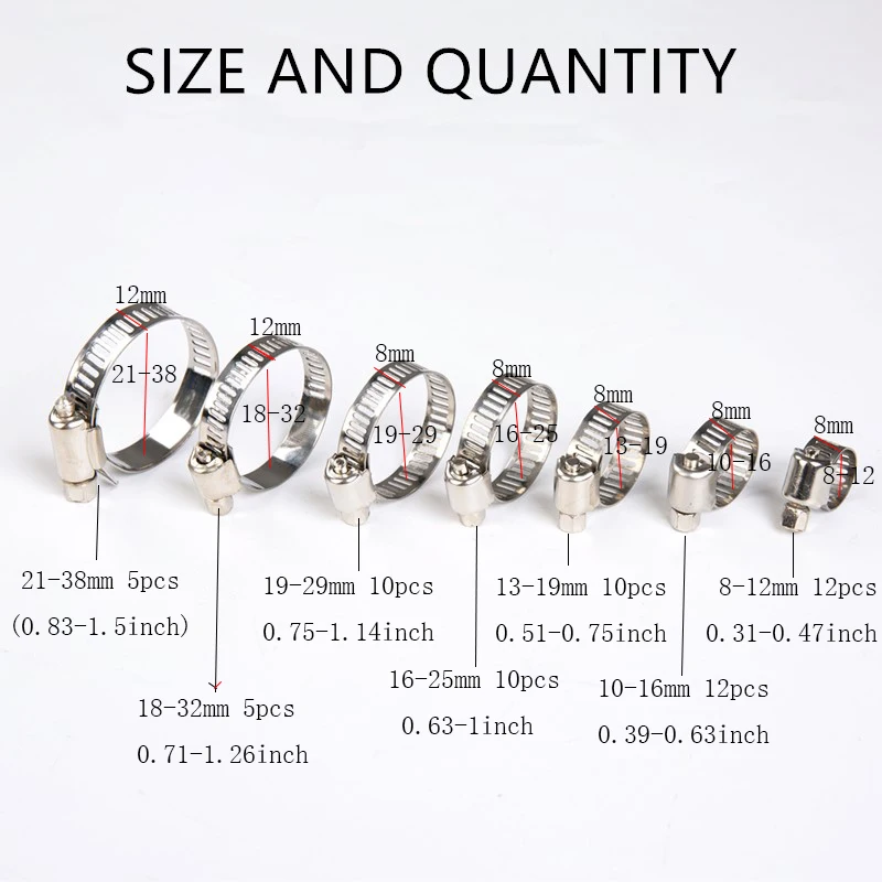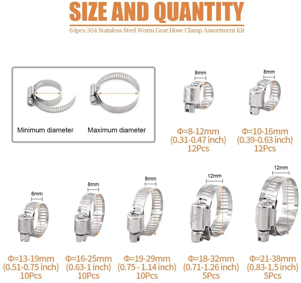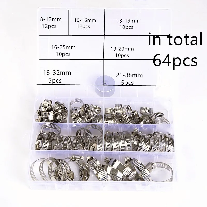 Зажимы для шланга, регулируемые, диаметр 8-38 мм, 64 шт.