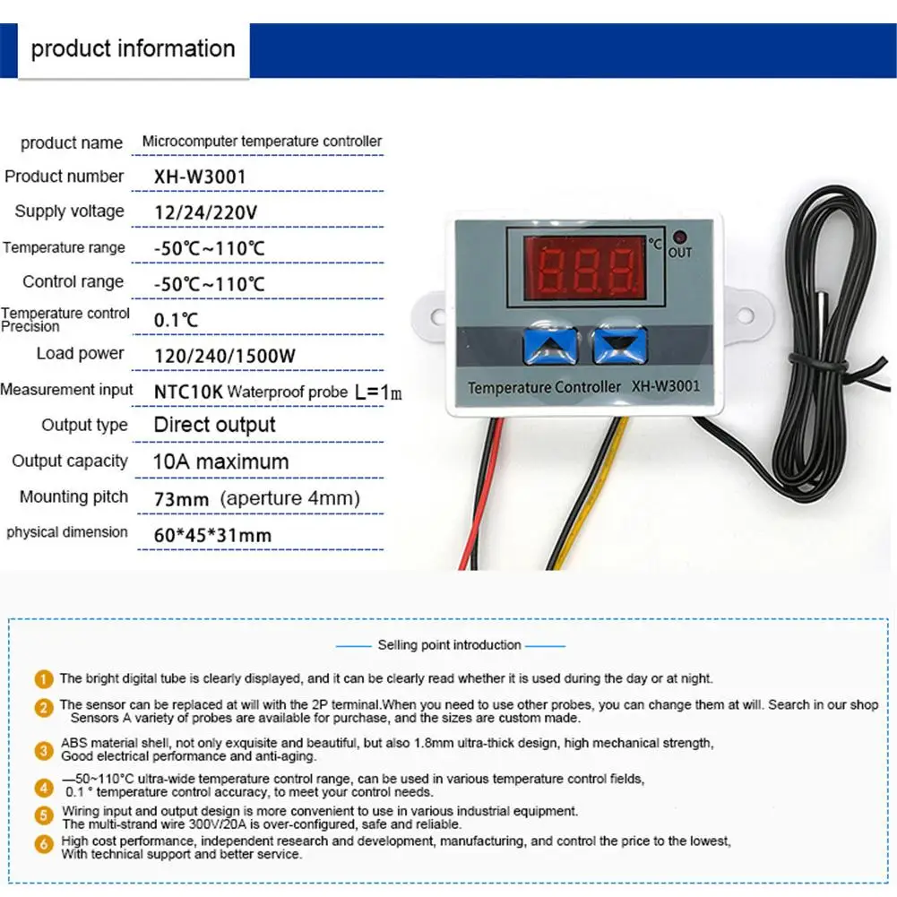 Цифровой регулятор температуры XH-W3001, переключатель термометра с...