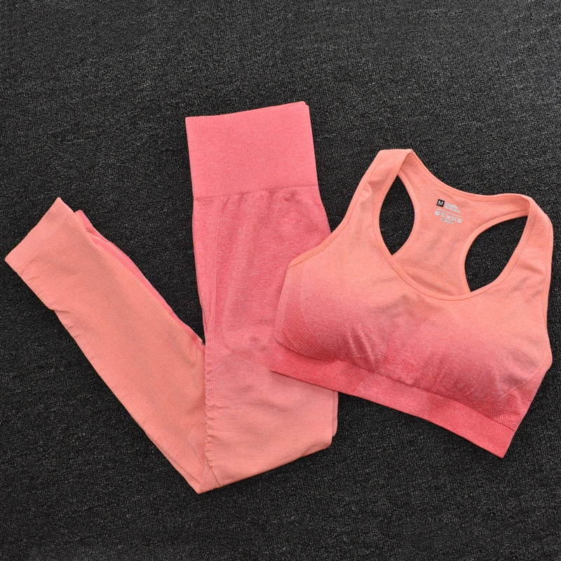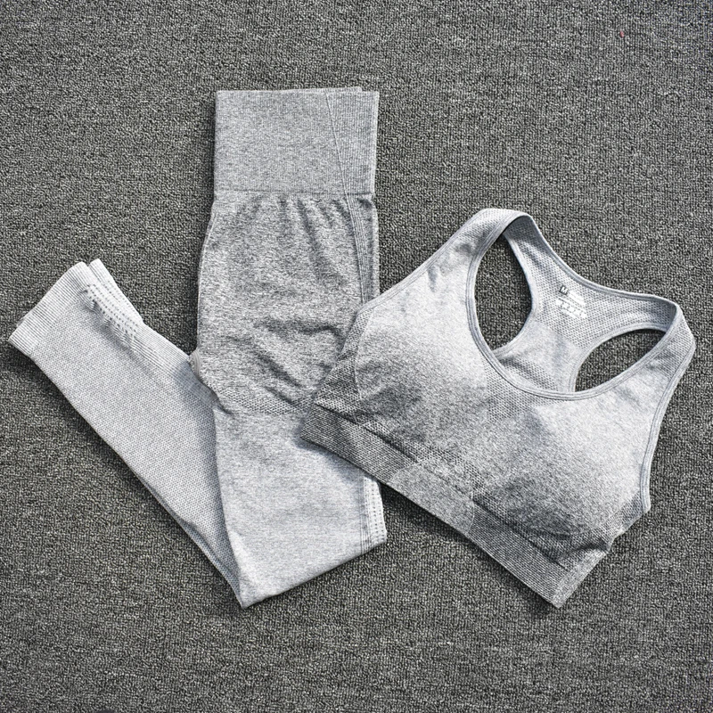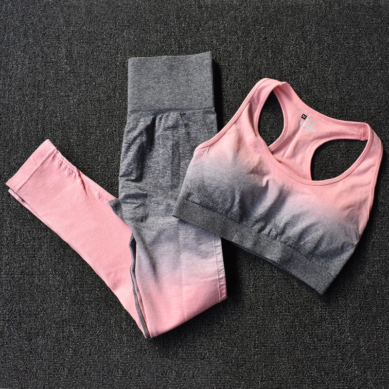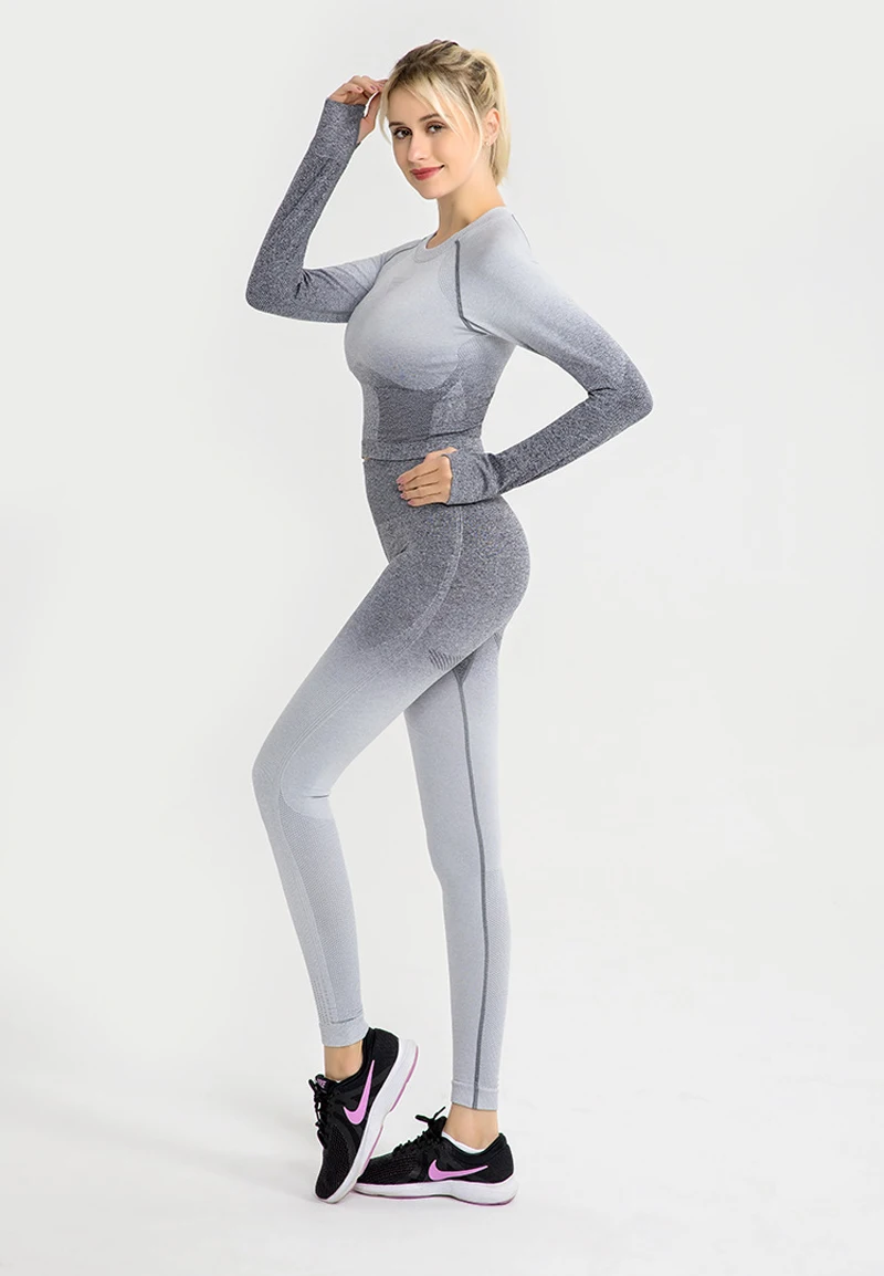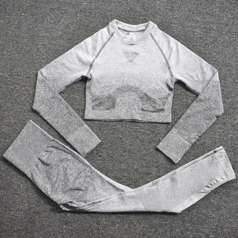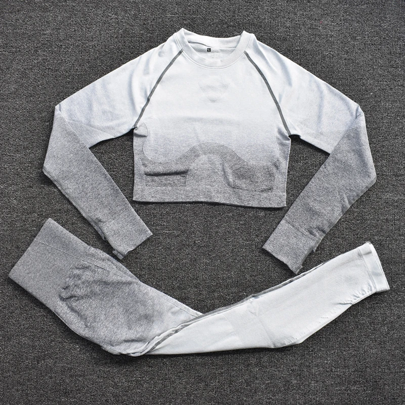 Женский комплект для йоги, леггинсы с эффектом омбре, Топ с длинным рукавом, спортивный бюстгальтер, штаны для бега, одежда для тренажерного зала, фитнеса, тренировок, спортивный костюм