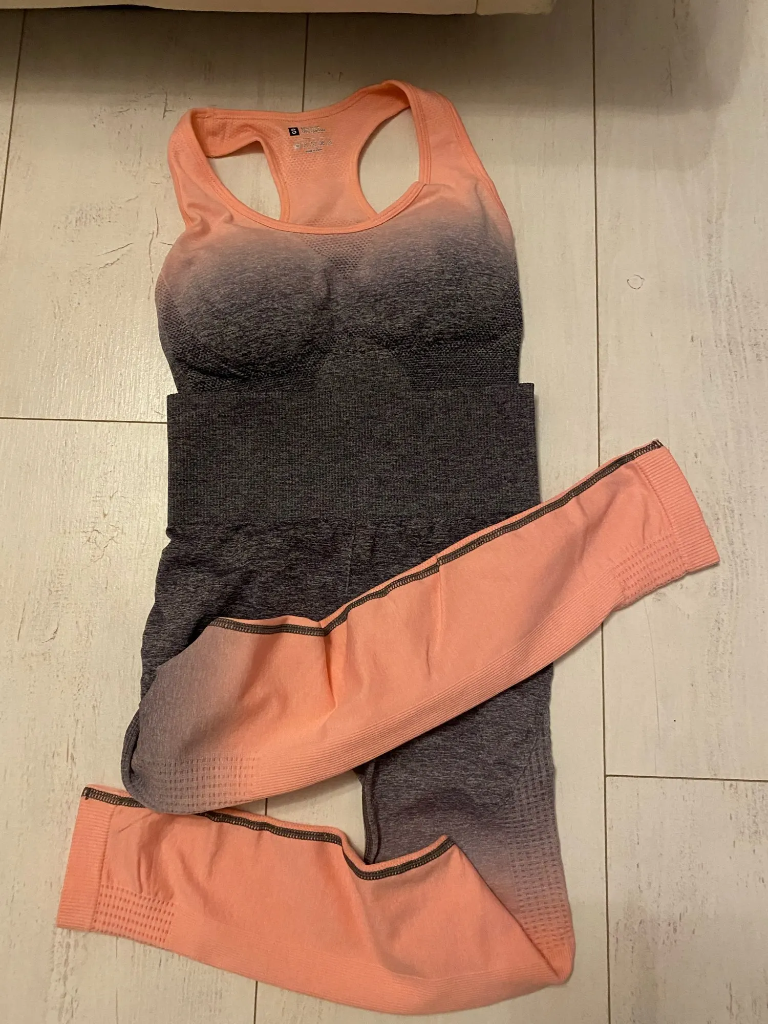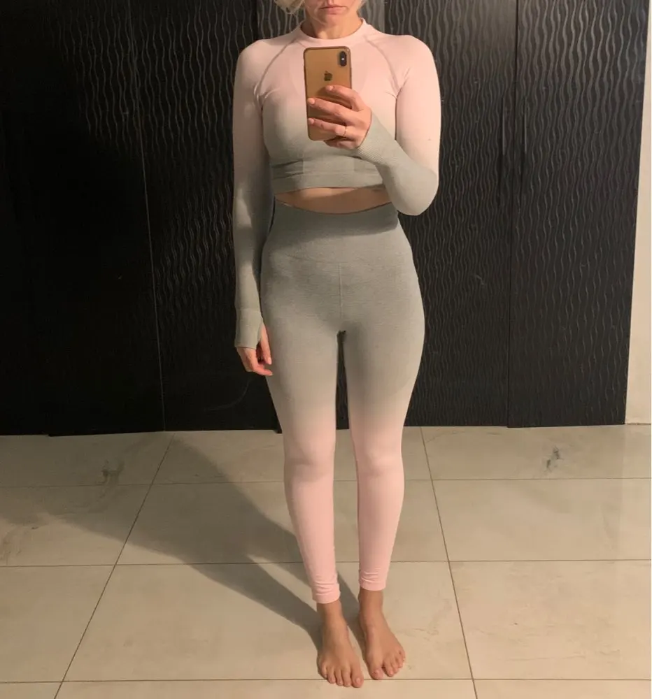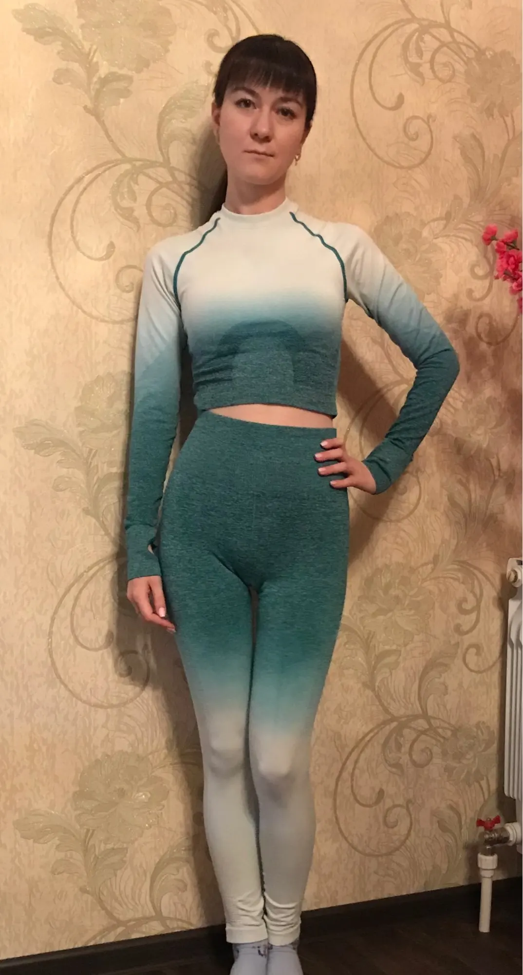 Шикарный костюм! Всё как на фото, рост 167 вес 52 кг брала М. Лосины в самый раз, топ чуть маловат, после тренировки растянулся и стал в самый раз. Доставили быстро в Сургут. Качество приятная, ткань тянется хорошо. Стирать ещё не пробовала