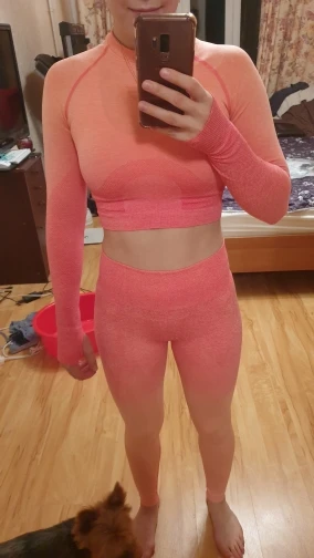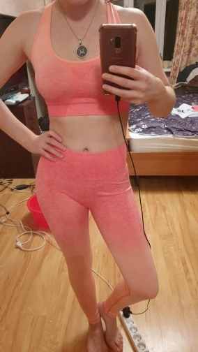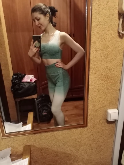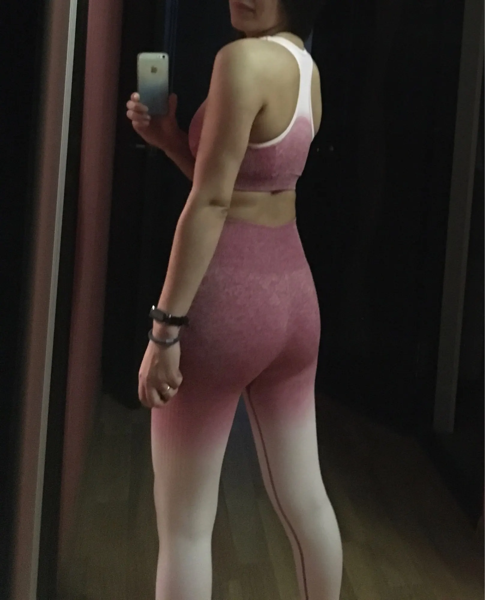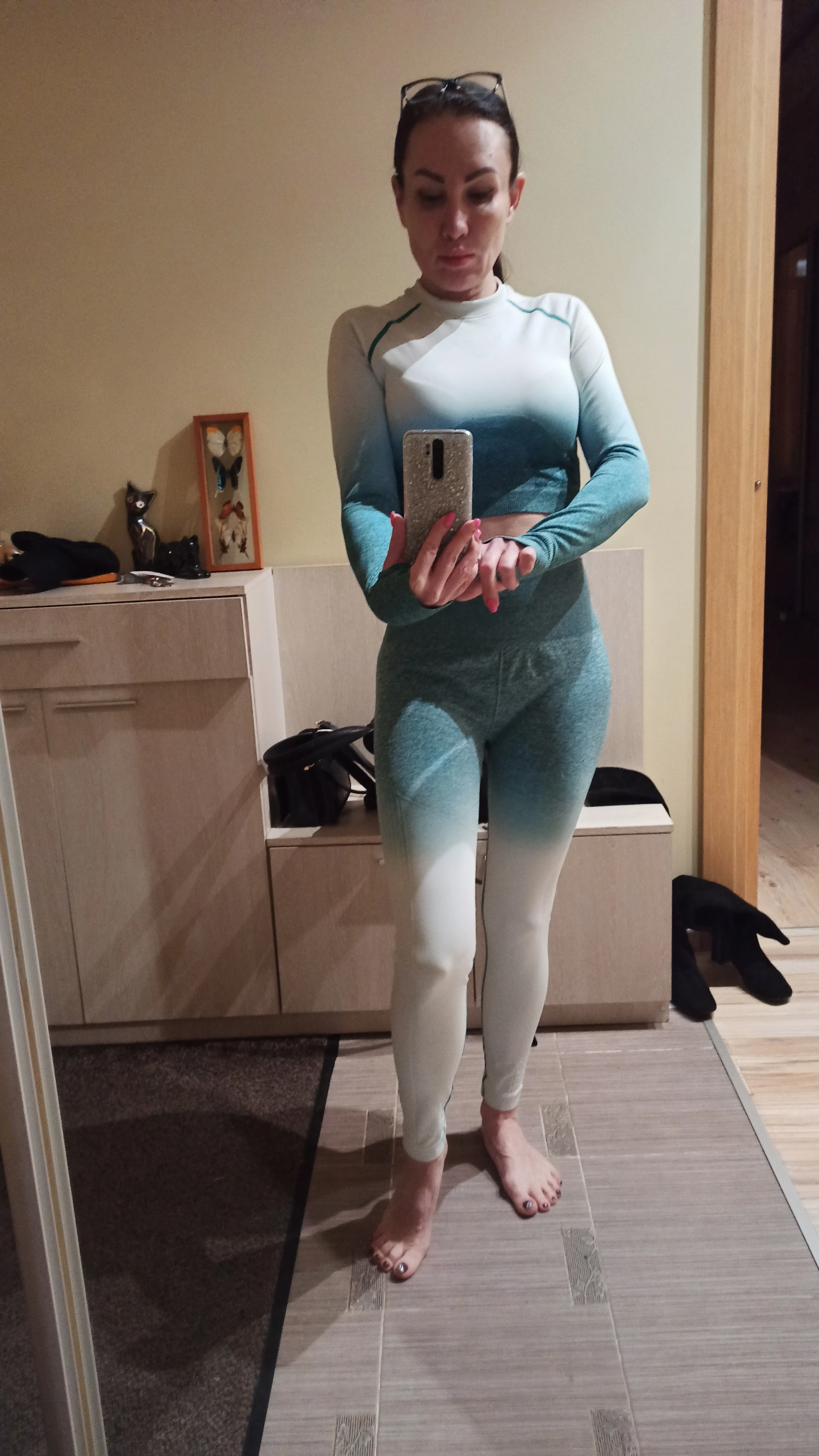 Это мой первый заказ одежды с алика. Всегда было страшно, что будет как в мемах: ожидание/реальность. В итоге я решилась и это просто восторг! По-порядку: 1. Я боялась, что ткань будет, знаете, как дешевый эластичный пижамный такой хлопок после которого всегда останутся растянутые колени, но эта ткань меня удивила. Она не скользкая, как большинство тайтсев известных брендов и намного плотнее, чем ткань тех же известных всем нам брендов. Немного просвечивает, но не существенно. 2. Размер S на 84/64/93, рост 165 и вес 57.5 подошел отлично. Единственное, у меня достаточно широкая спина, но тем не менее в топе комфортно. Я бы возможно и взяла по-больше, но тогда бы тайтсы на талии болтались. 3. Ластовица не так уж и заметна. 4. Цвет очень крутой, сочный. Выделяться в толпе точно будет. 5. Швы идеальны, это правда! Я всматривалась в каждую строчку, просто идеально! Те же адидасы и некоторые найки реально делают очень плохие швы! 6. Выглядит очень дорого! Я потом еще куплю других цветов!