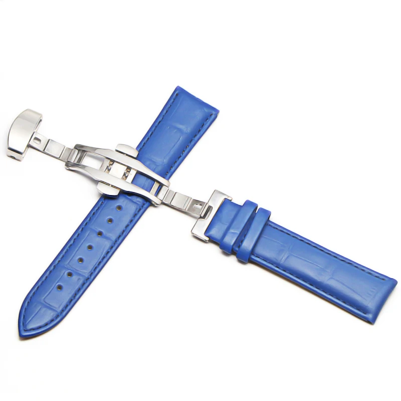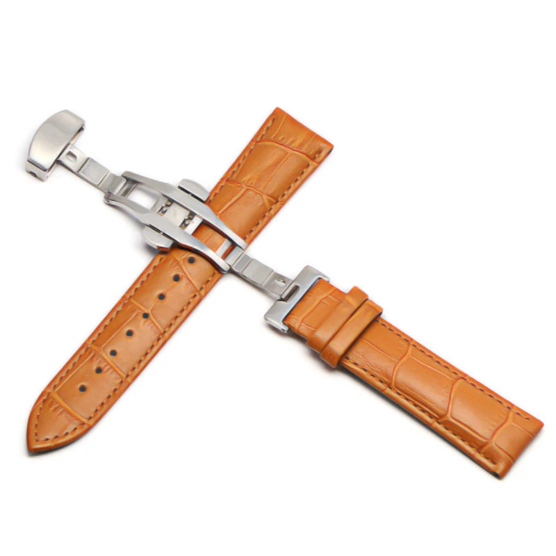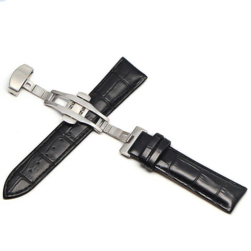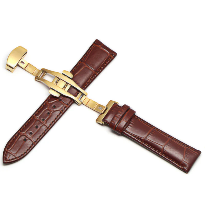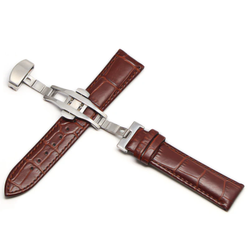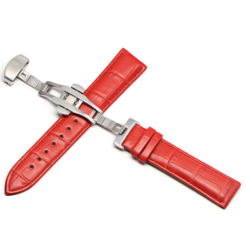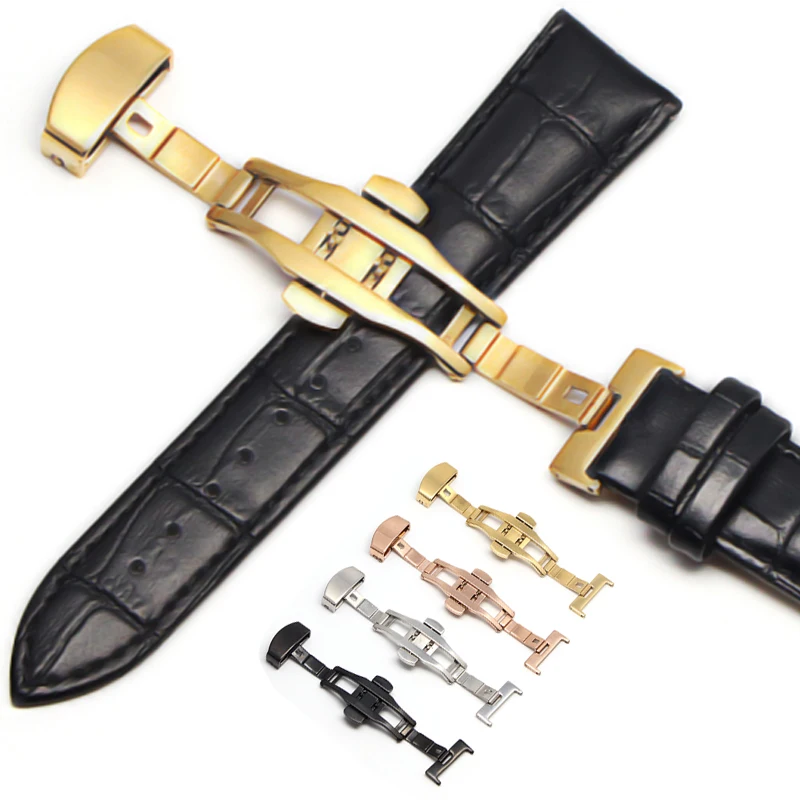 Кожаный ремешок 12-24 мм, Универсальные часы с пряжкой-бабочкой, стальной ремешок с пряжкой, браслет на запястье для gear s3 Huawei Casio